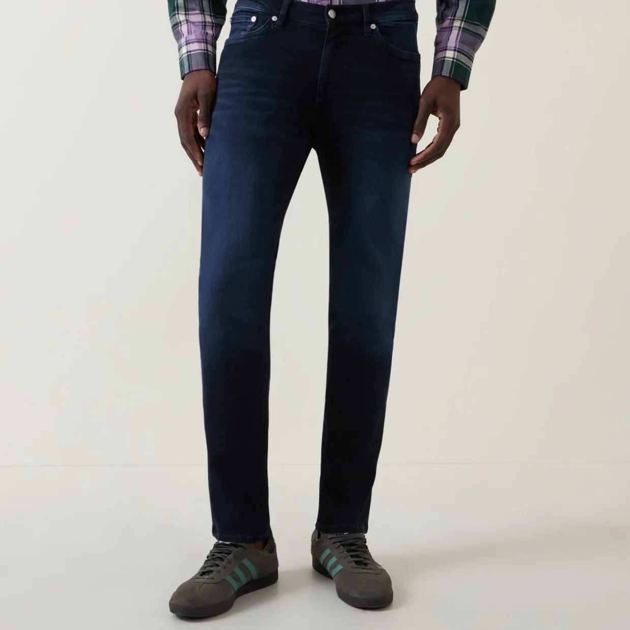 - Slim fit, regular length, mid-rise