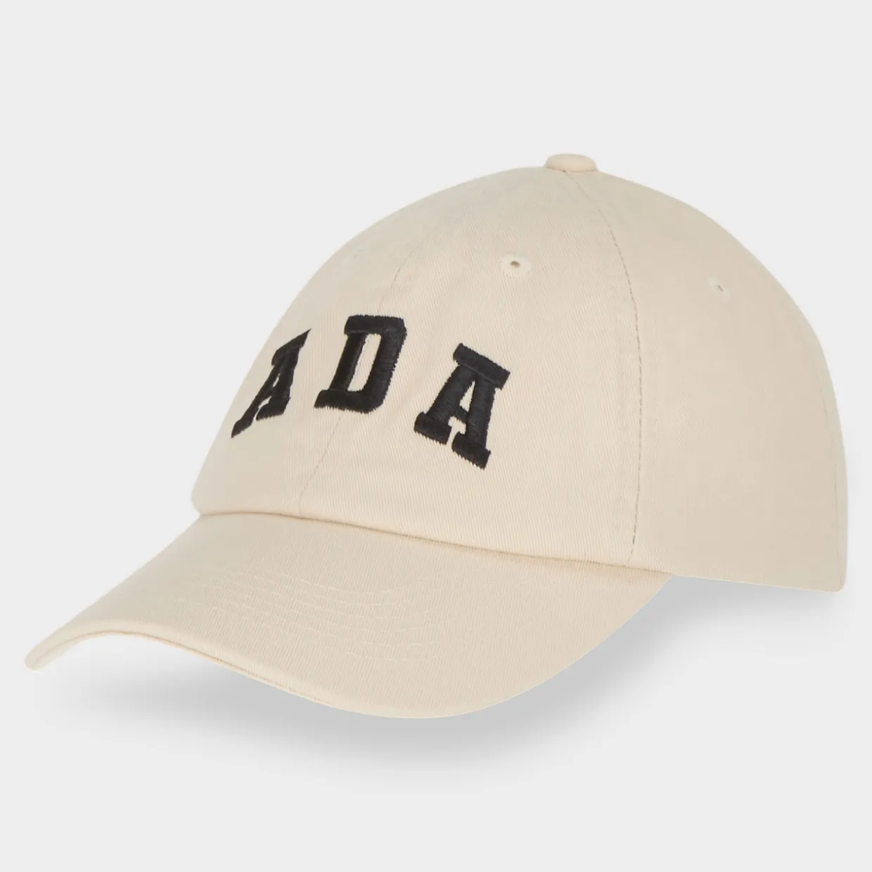 - Logo detail, peaked visor, six-panel design, adjustable back