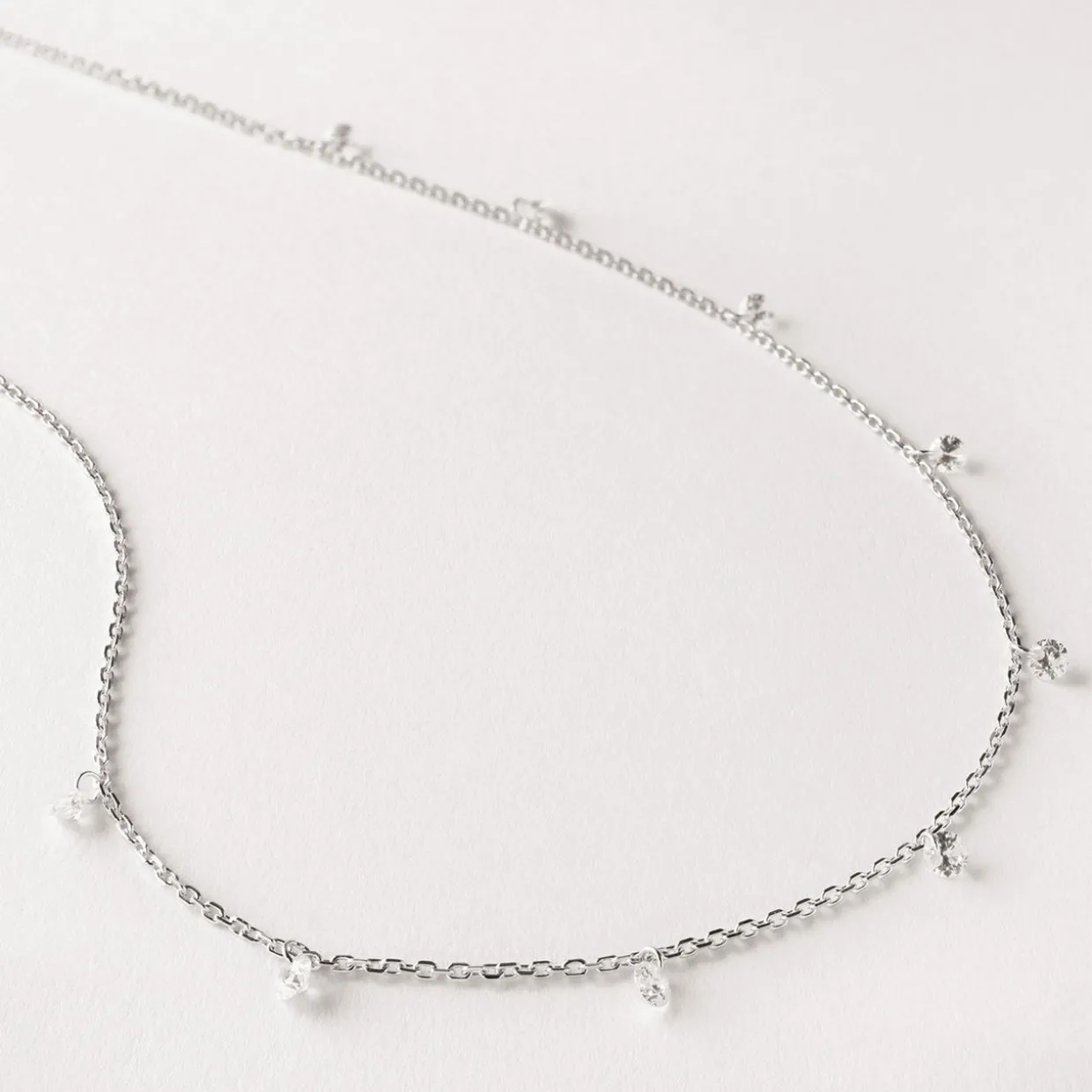 - Nine cubic zirconia gems, suspended design, delicate link chain, clasp fastening, adjustable, gold-tone finish