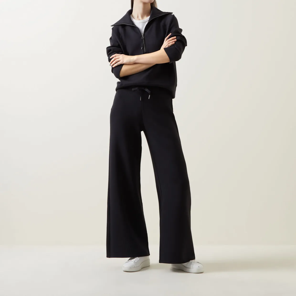 - Wide leg elasticated waistband, drawstring fastening, lightweight, fine knit