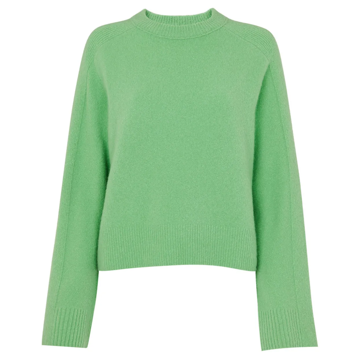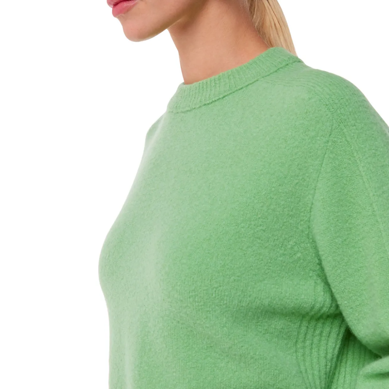 - Crew neckline, long sleeves, dropped shoulders, ribbed trims, knit structure