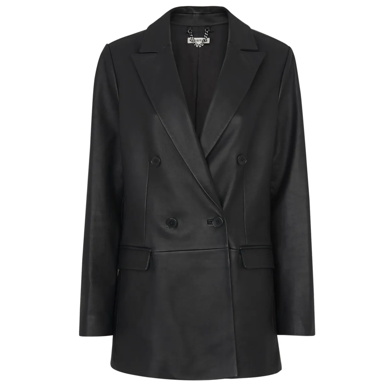 - Long sleeves, buttoned cuffs, double-breasted, front button fastenings, peaked lapels, fitted waist