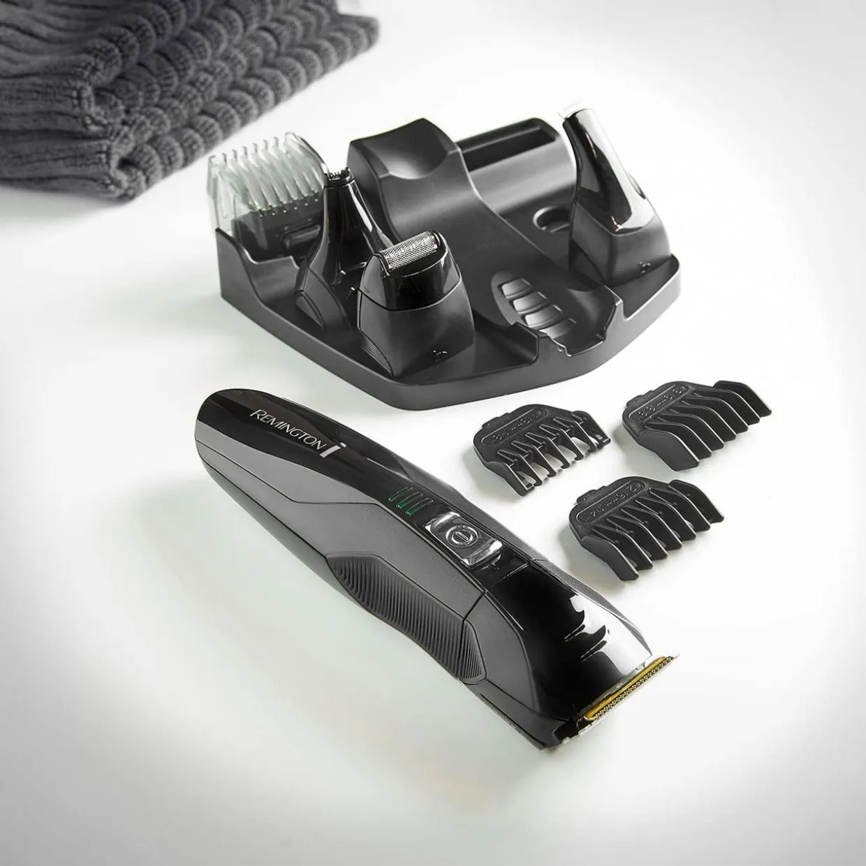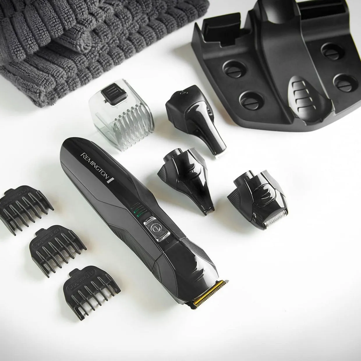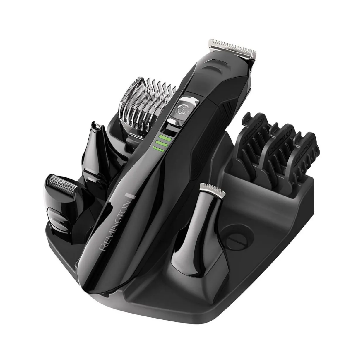 The All In One Grooming Kit that hasSelf-Sharpening Stainless Steel Blades. Its30mm Main Trimmerhas anAdjustable Beard and Hair Combthat attaches to give you2mm-16mm Length Settingsor choose from3 x Fixed Combs (3mm-9mm).Perfect the finer details, like neatening up sideburns with theDetail Trimmerand trim away any unwanted hair with theLinear Nose and Ear Trimmer.