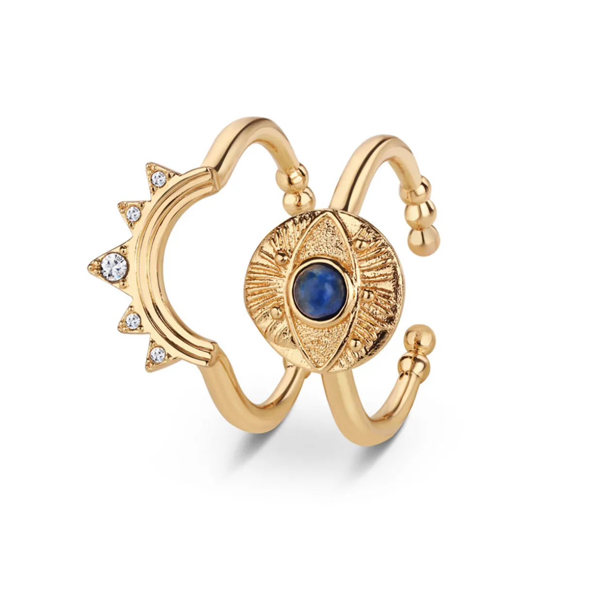 - Stacking rings, clear Preciosa crystal and lapis Lazuli stone settings, presented in signature Newbridge Silverware gift box
