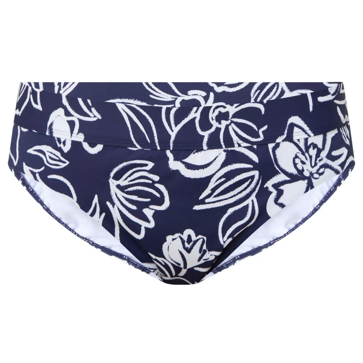 - Mid to high rise, wide waistband, classic coverage, Alora Floral print, two-tone design, rear logo plaque, smooth finish