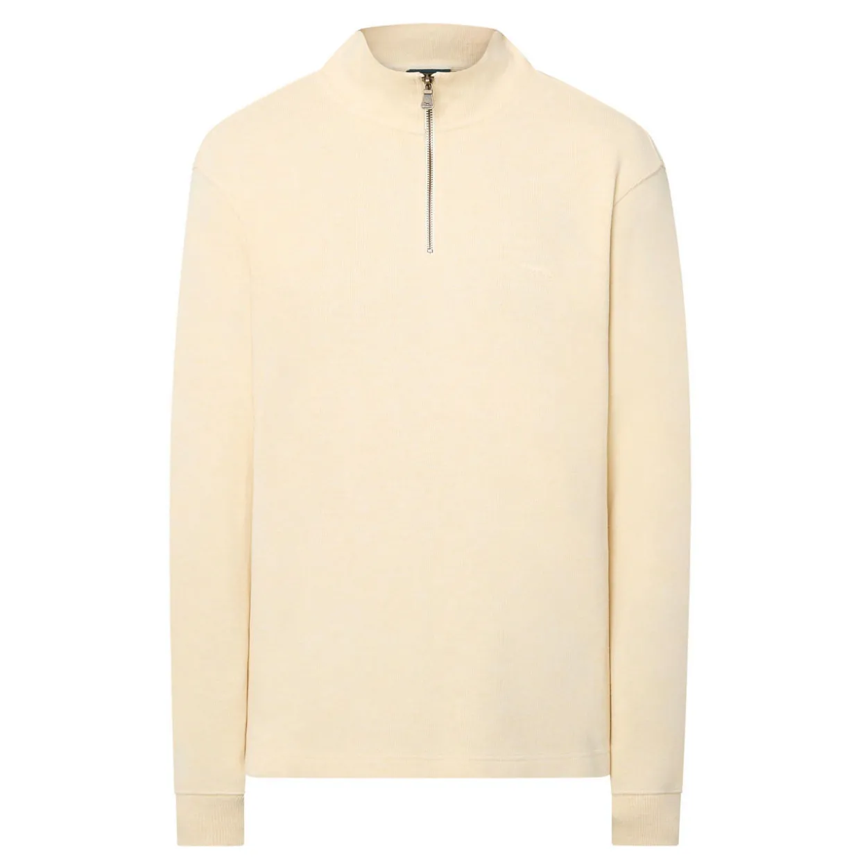 - Long sleeves, stand-up collar, half zip-fastening placket, tonal logo embroidery, stretch cuffs, straight hemline, smooth fabric