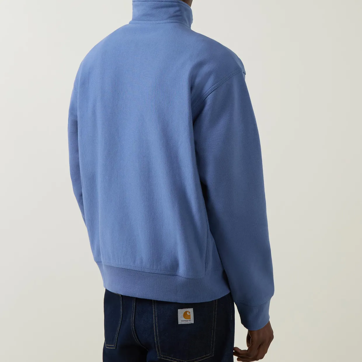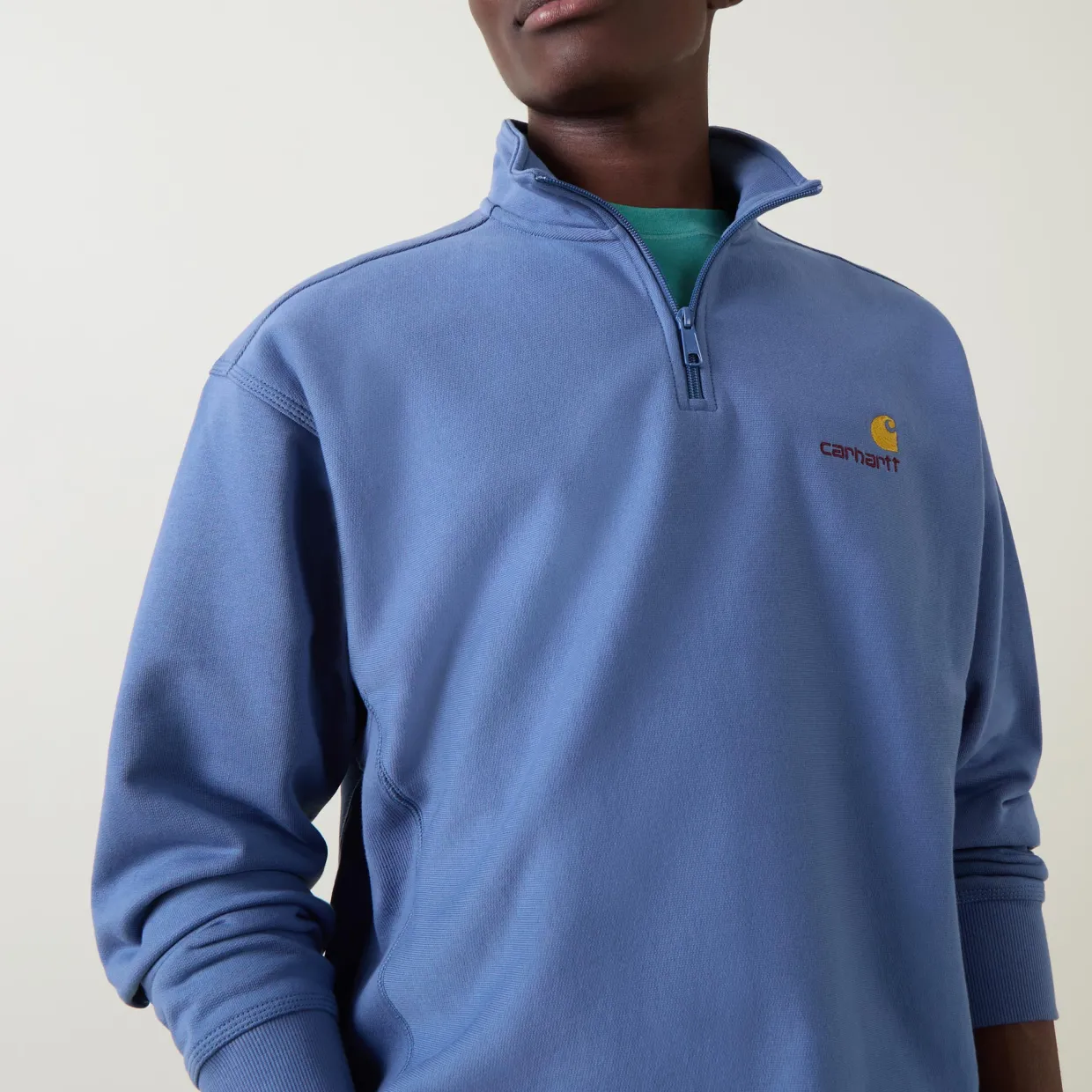 - Stand-up collar, long sleeves, dropped shoulders, half zip-fastening placket, logo embroidery on chest, elasticated hemline, stretch cuffs, smooth fabric