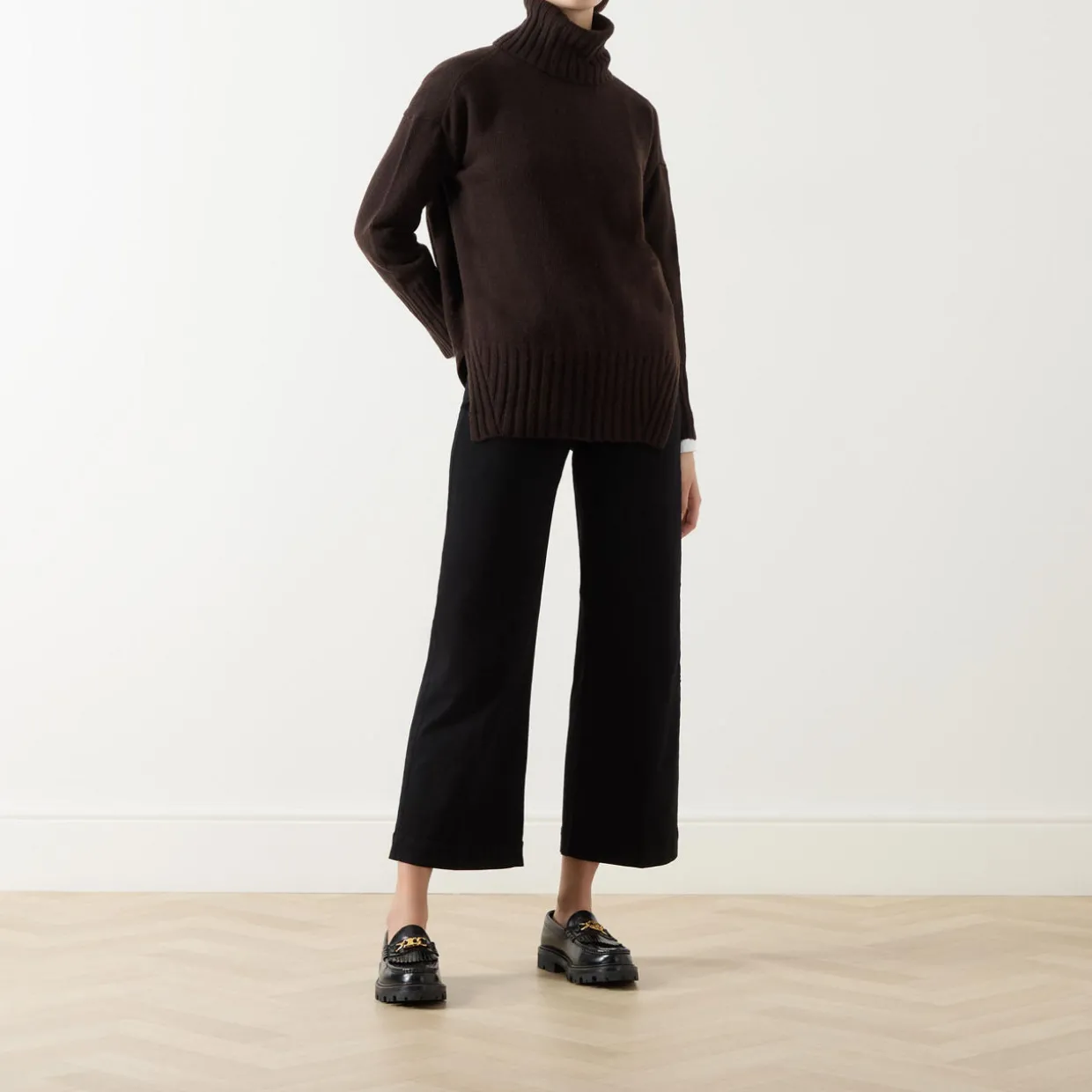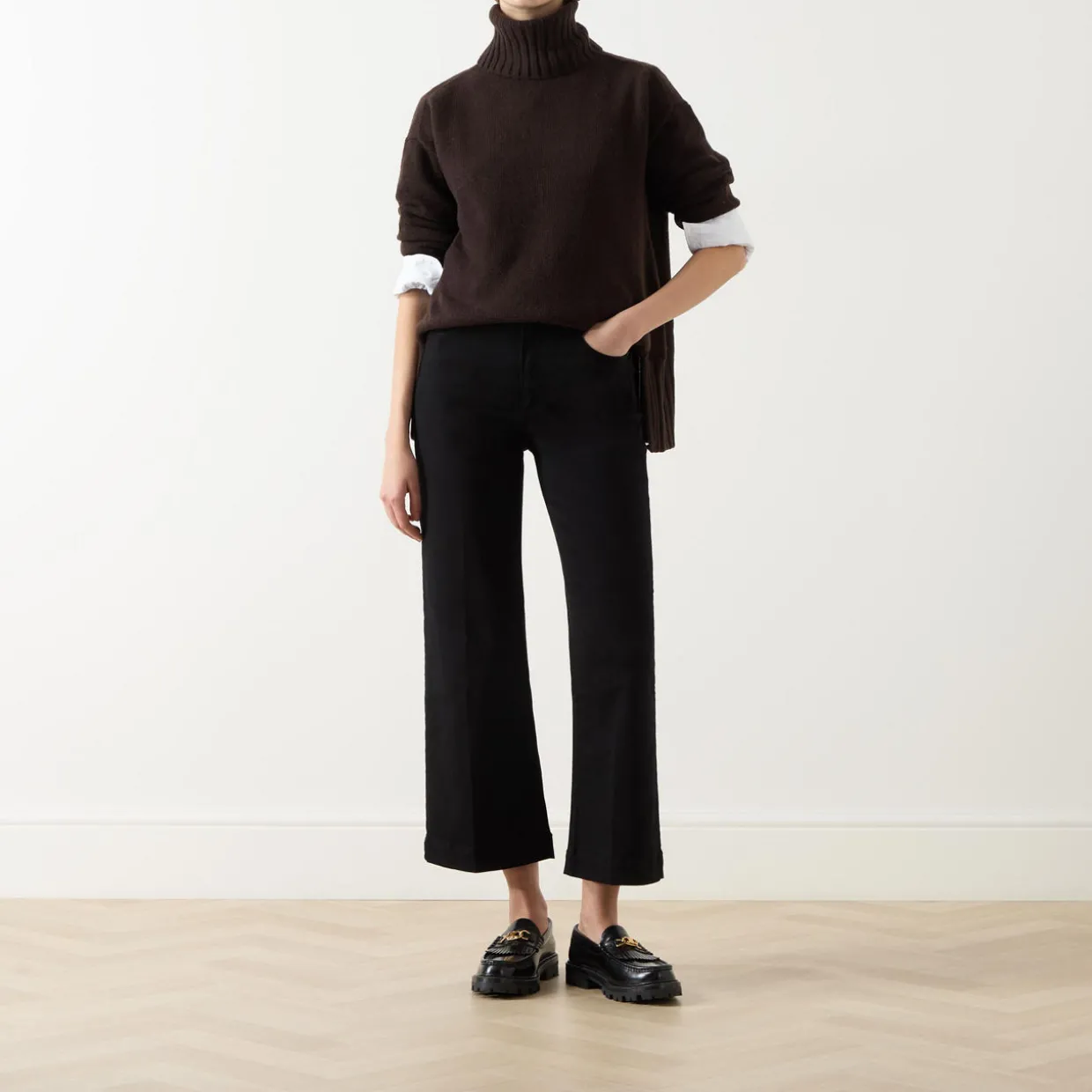 - High-rise, wide-leg, cropped length, belt loops, concealed fly and button fastening, five-pocket styling, clean hems, tonal hardware, stretch fabric
