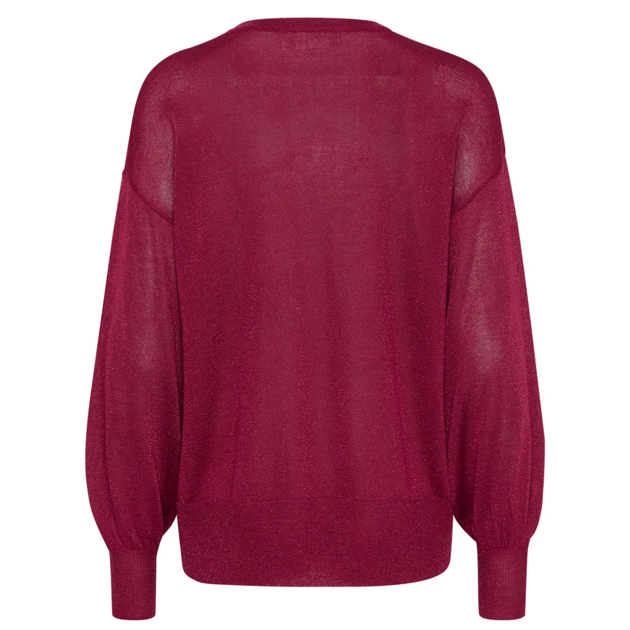 - Round neckline, dropped shoulders, knit structure, long balloon-style sleeves, fitted cuffs, straight hemline