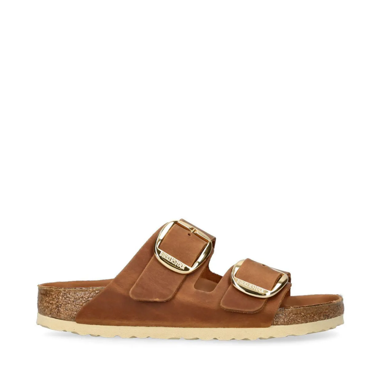 - Slip on style, dual strap, adjustable metal pin buckles, open toe, anatomically shaped cork-latex footbed