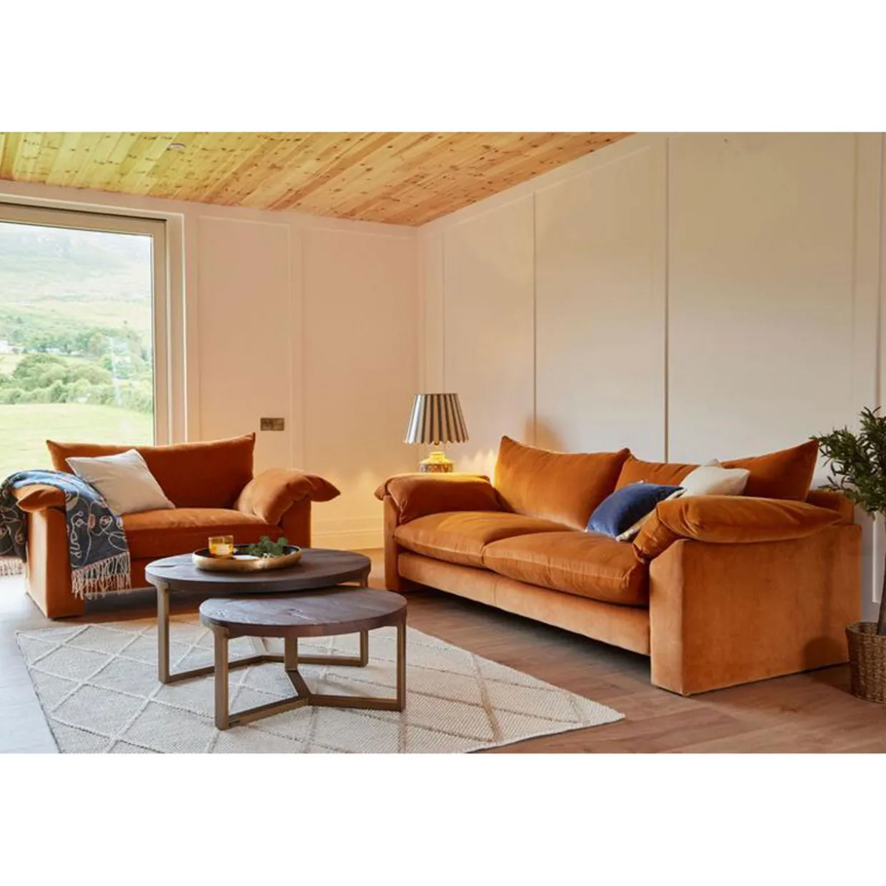 Upholstered in luxurious fabric, the Arlington sofa brings a vibrant colour to any space while remaining chic and timeless. With comfortable seats and back, this piece enables you to lounge in comfort and style.