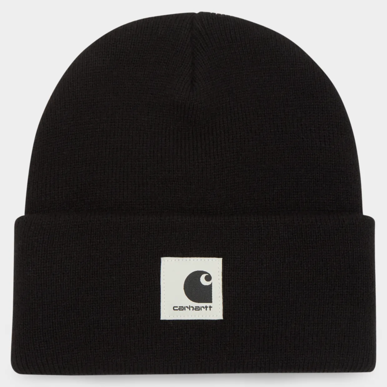 - Beanie style, turned-up brim, knit structure, logo badge