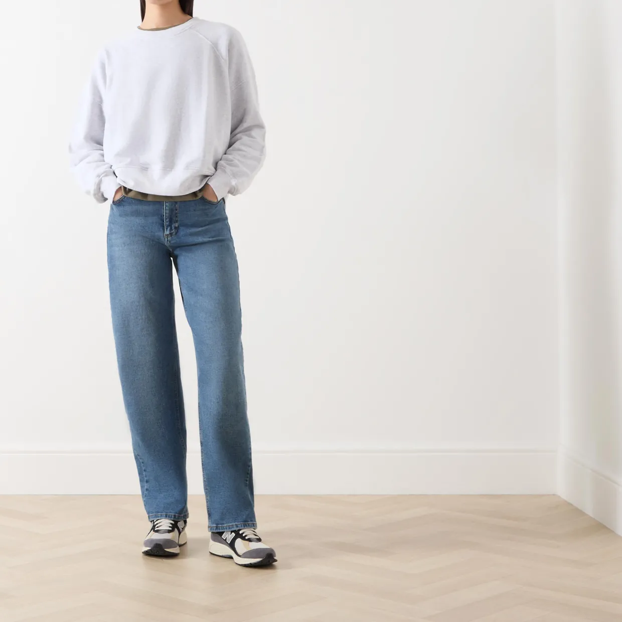 - Crew neckline, long sleeves, straight hemline, ribbed trims