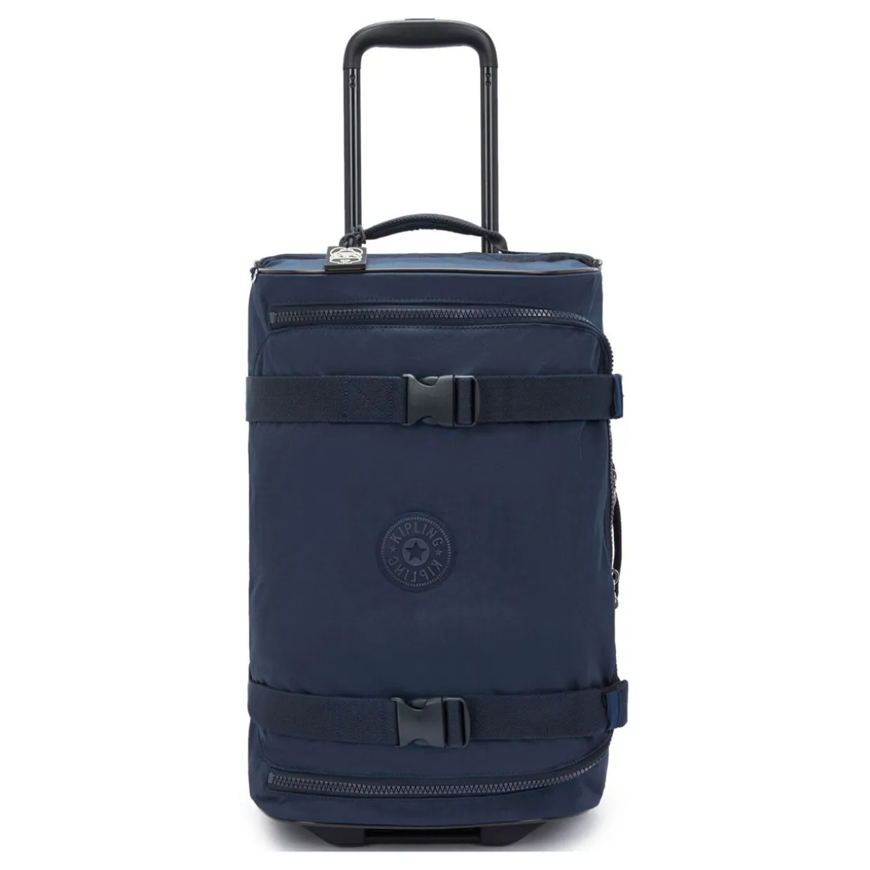 - Features: Exterior: Two wheeled luggage, adjustable straps, double handle bar, extra straps, easy access side pocket, double safe TSA lock, round Kipling logo. Interior: Two zipped main compartments
