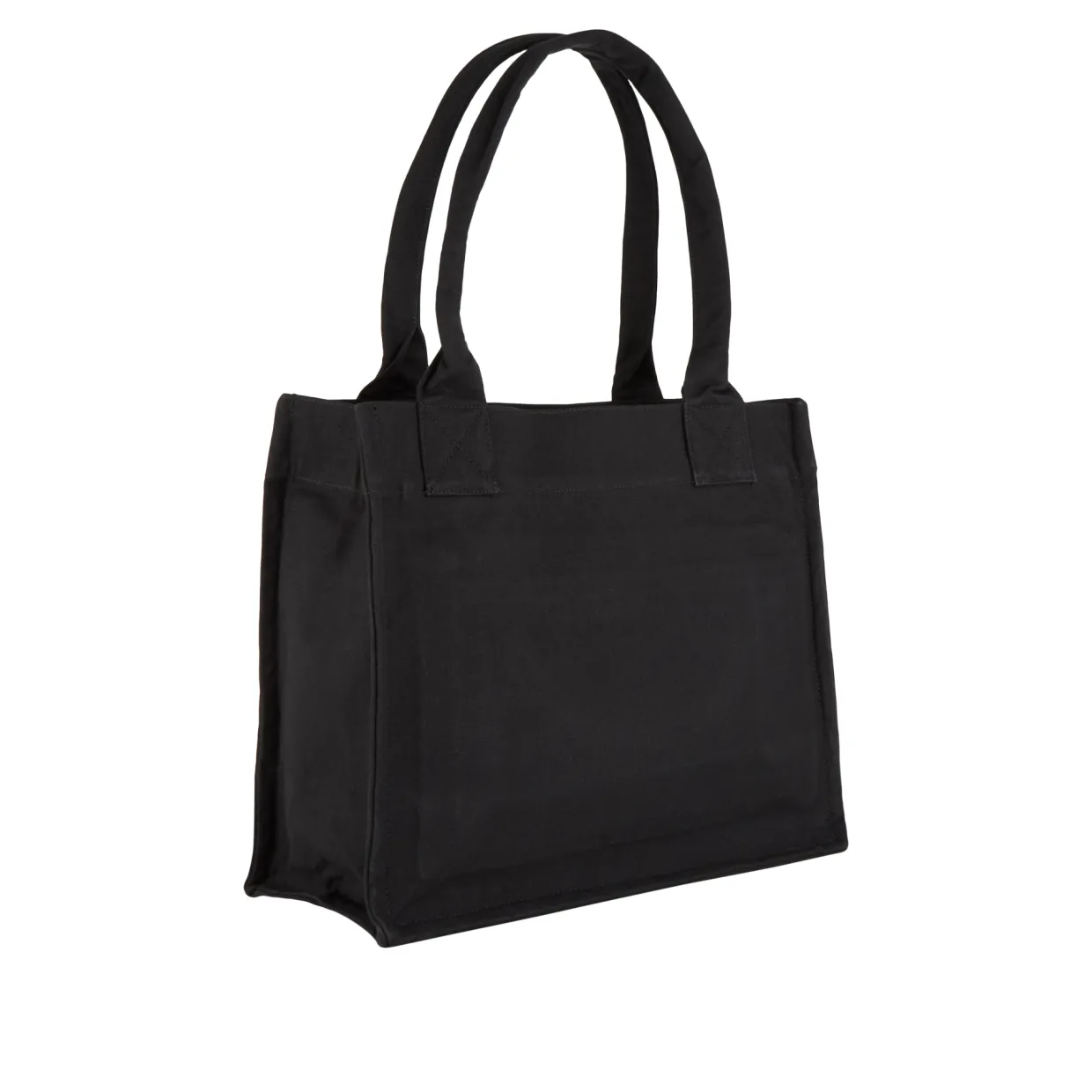 - Carry handles, open top, solid design, banana print, shearling textured logo lettering, slogan detail, canvas finish