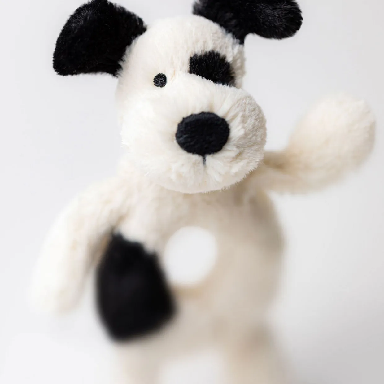 Bashful Black & Cream Puppy Ring Rattle 18cm
