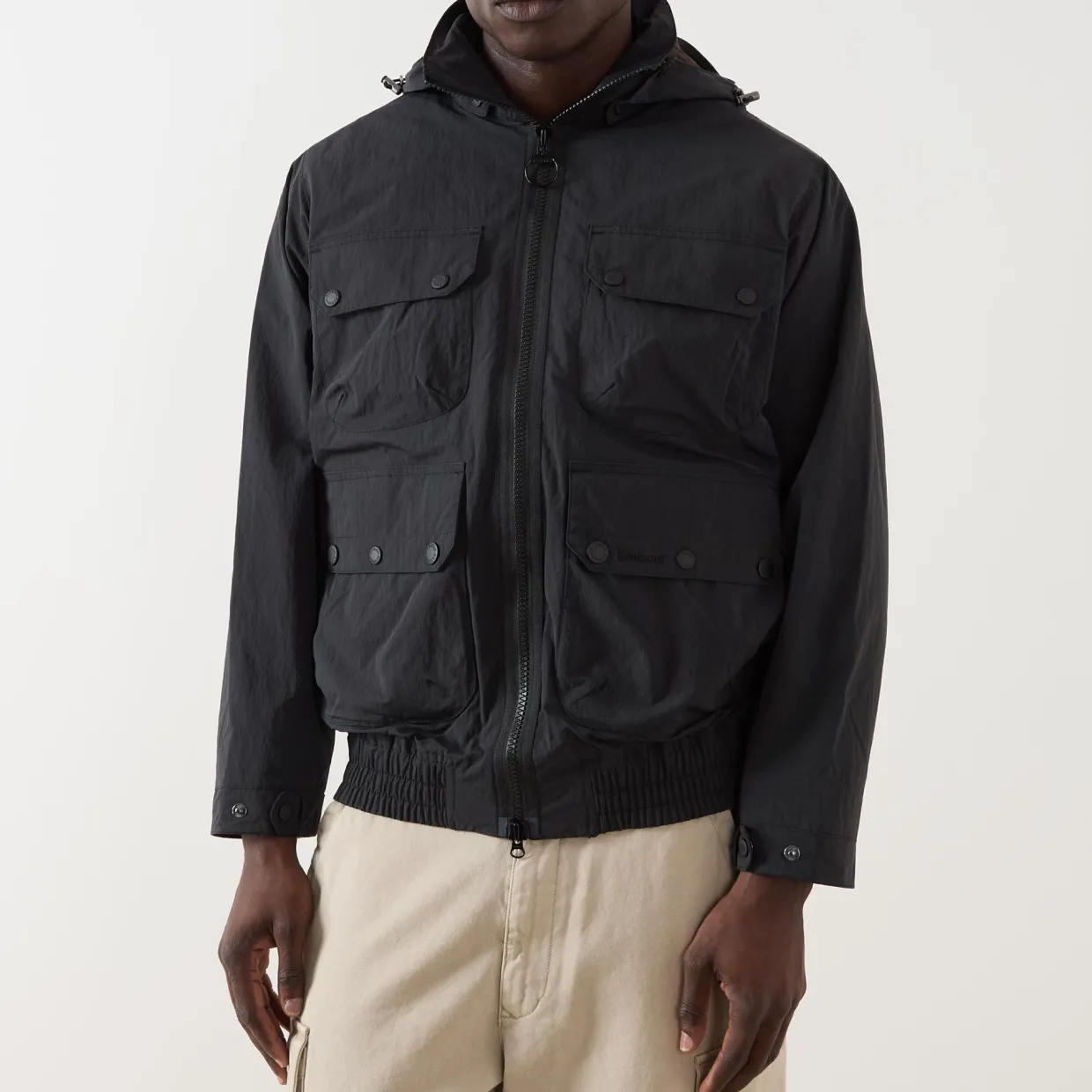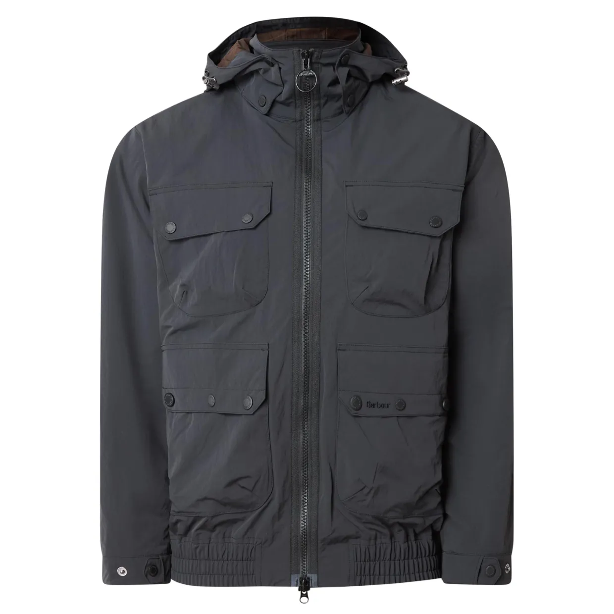 - Hooded, long sleeves, logo detail, chest pockets, front pockets, elasticated hem, adjustable cuffs, showerproof