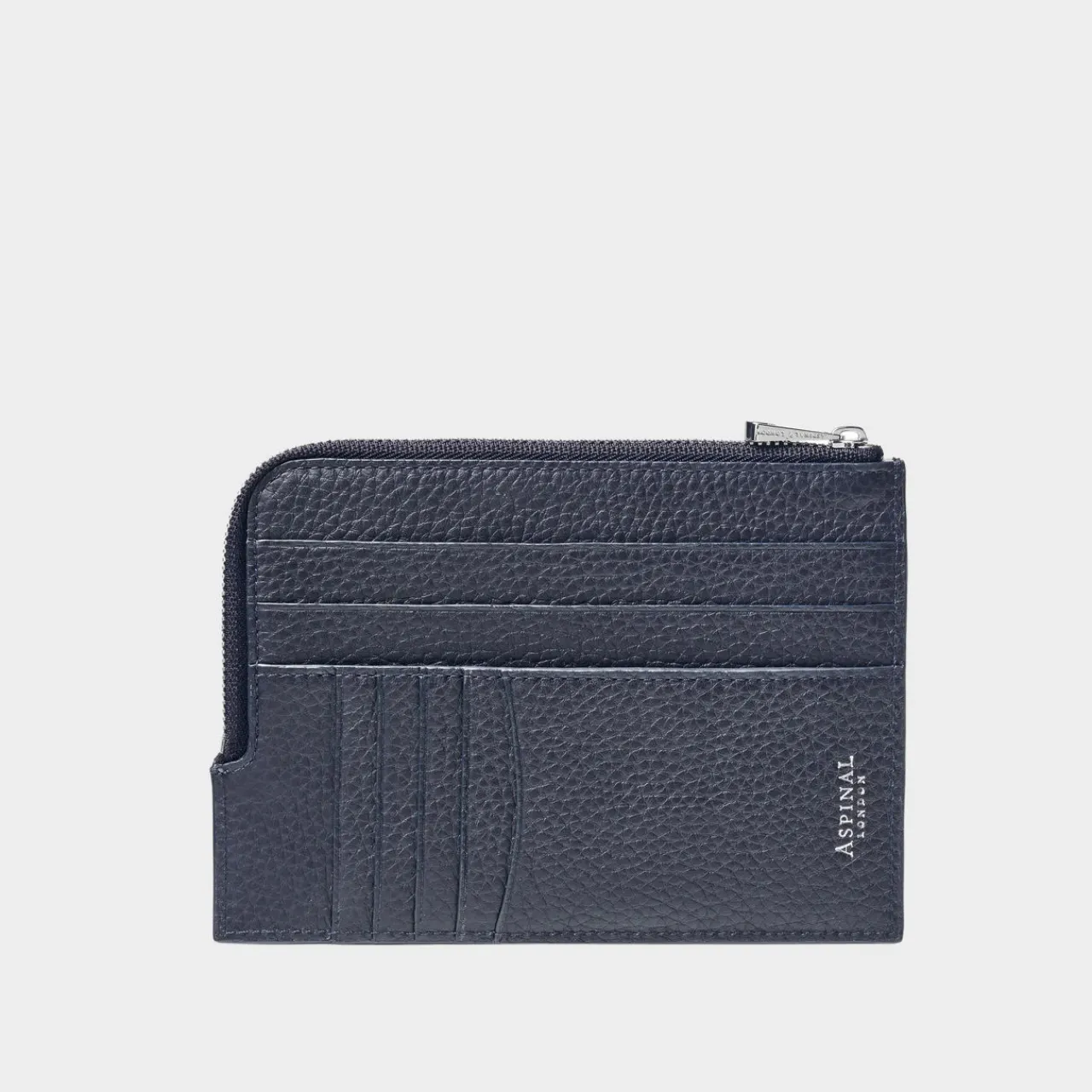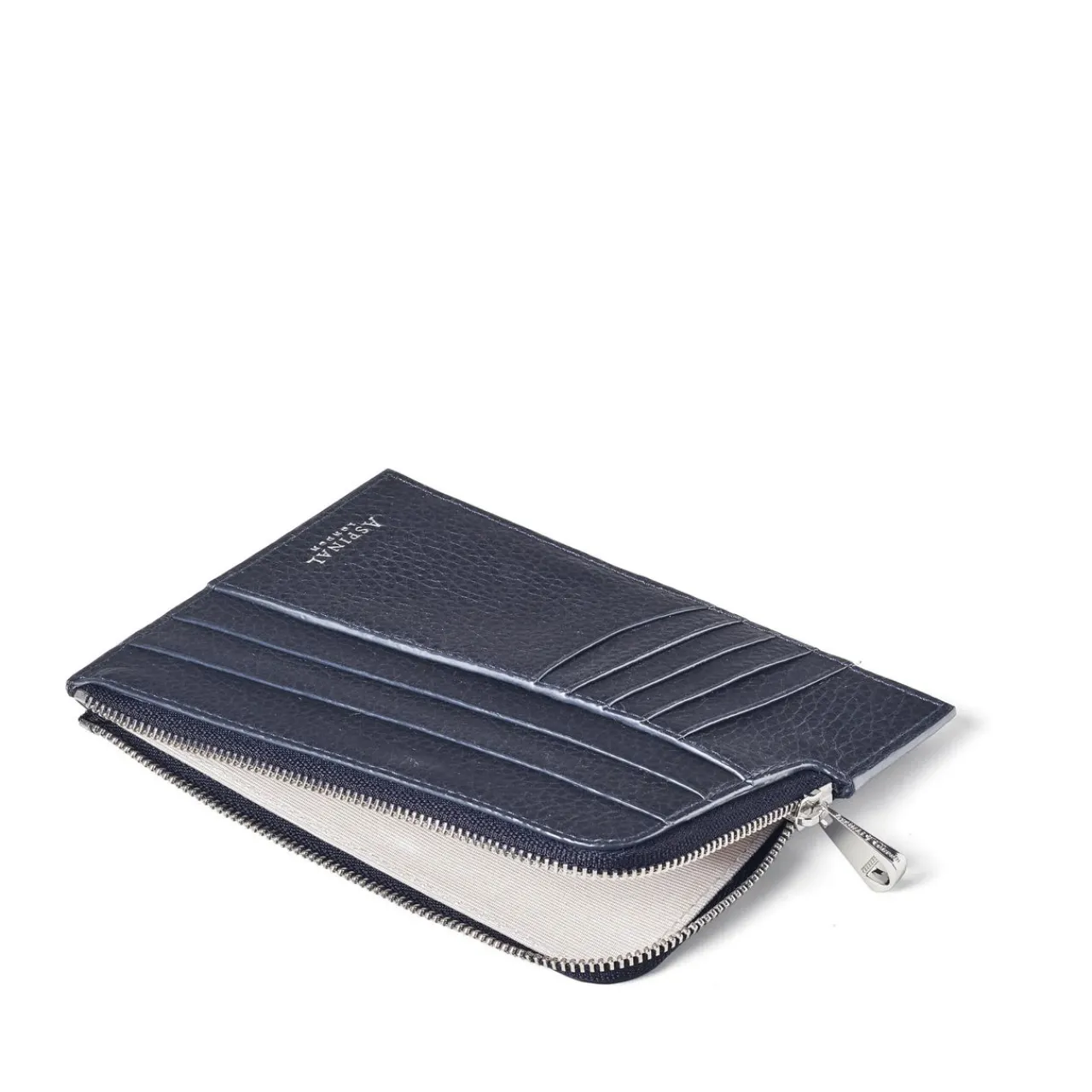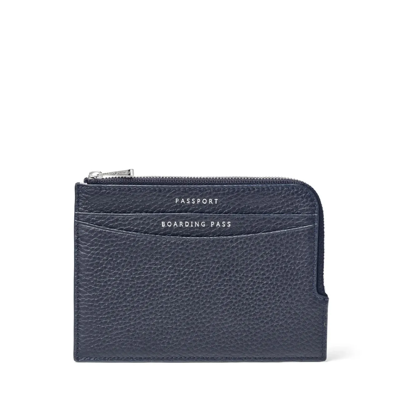 - Top zip fastening, two front slip pockets, three rear slip pockets, five card slots, signature silver-tone hardware, logo lettering, textured finish, tonal stitching, silk lined