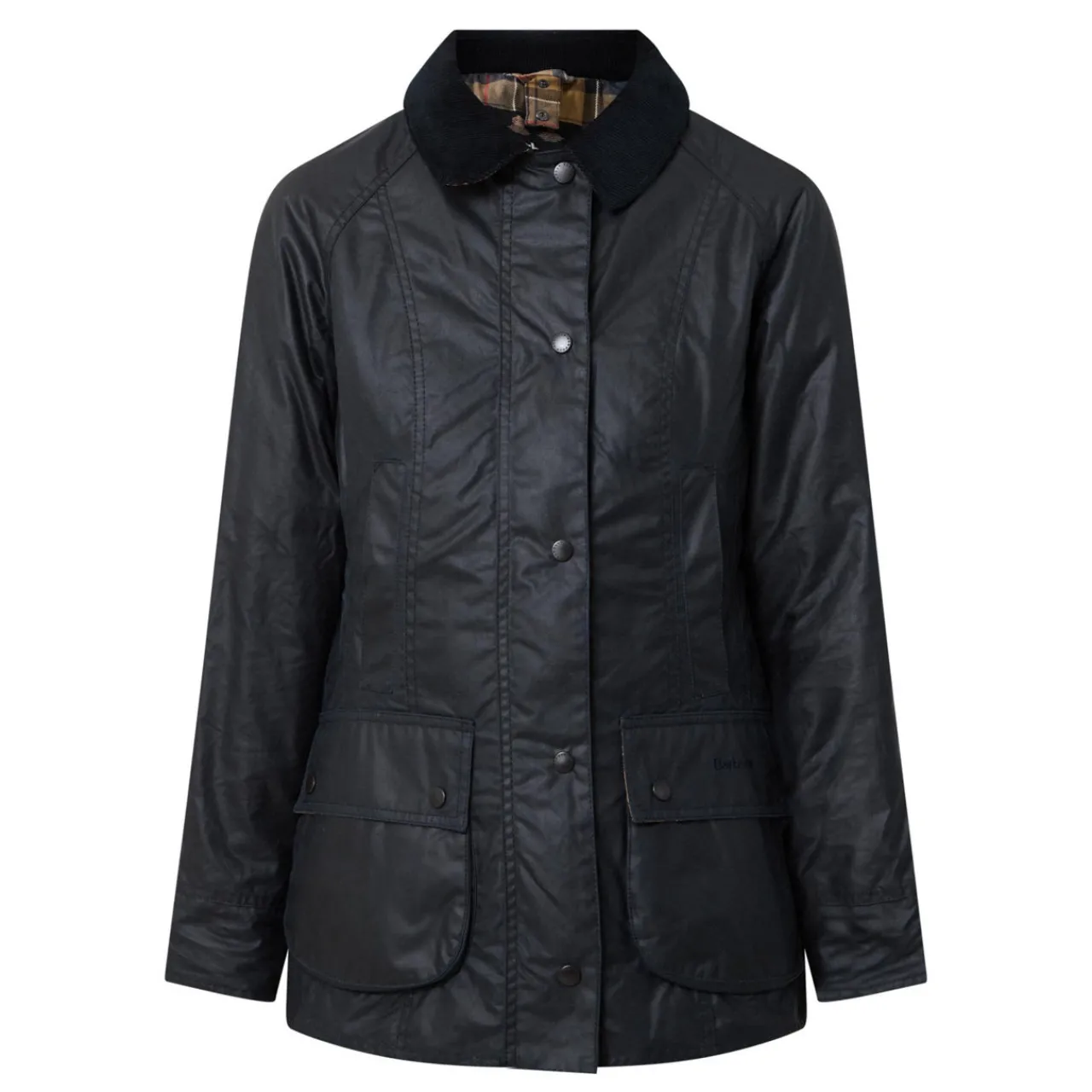 - Pointed collar, long sleeves, button fastening, slit pockets, two flap pockets, logo embroidery, wax coated finish