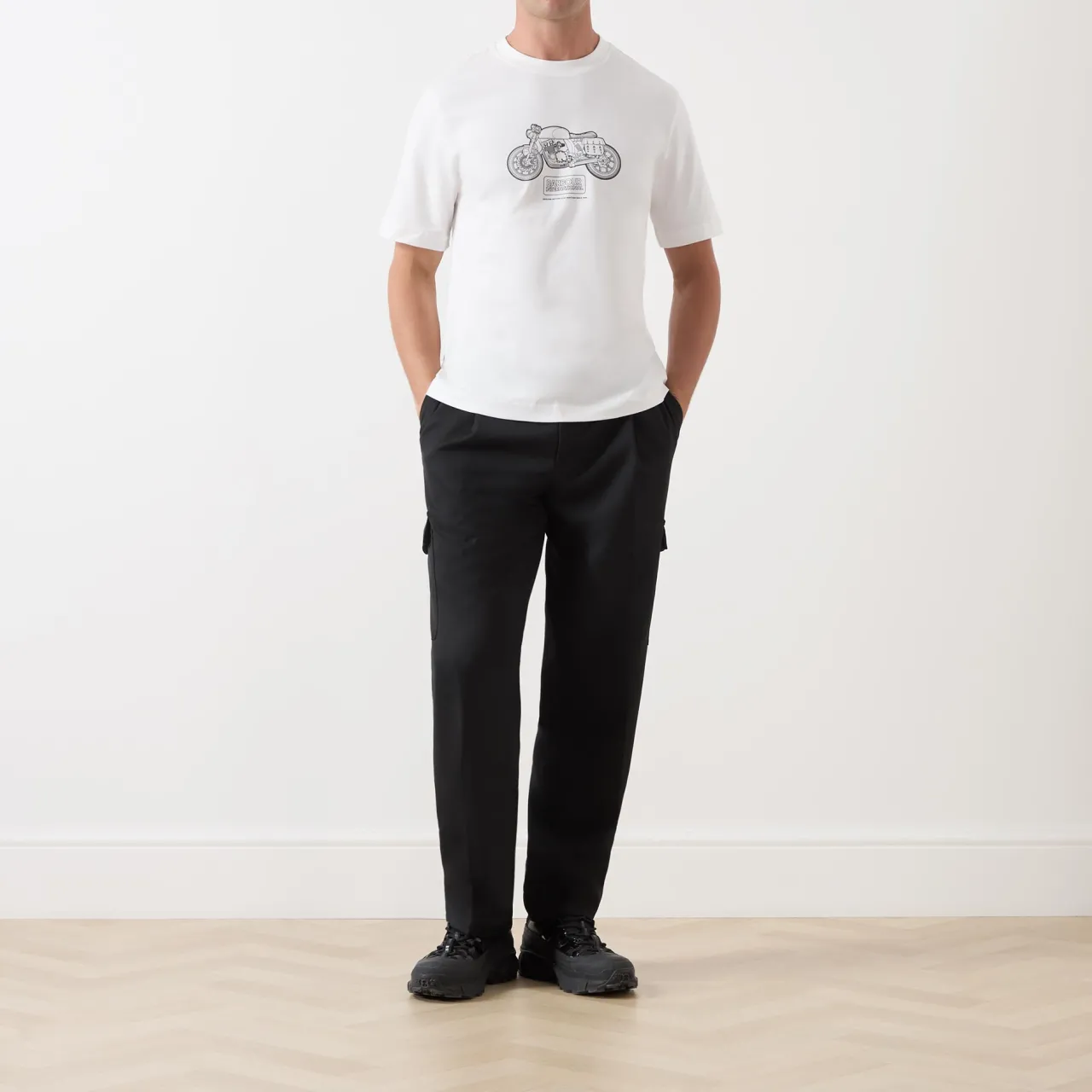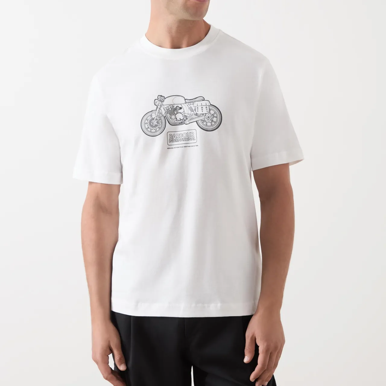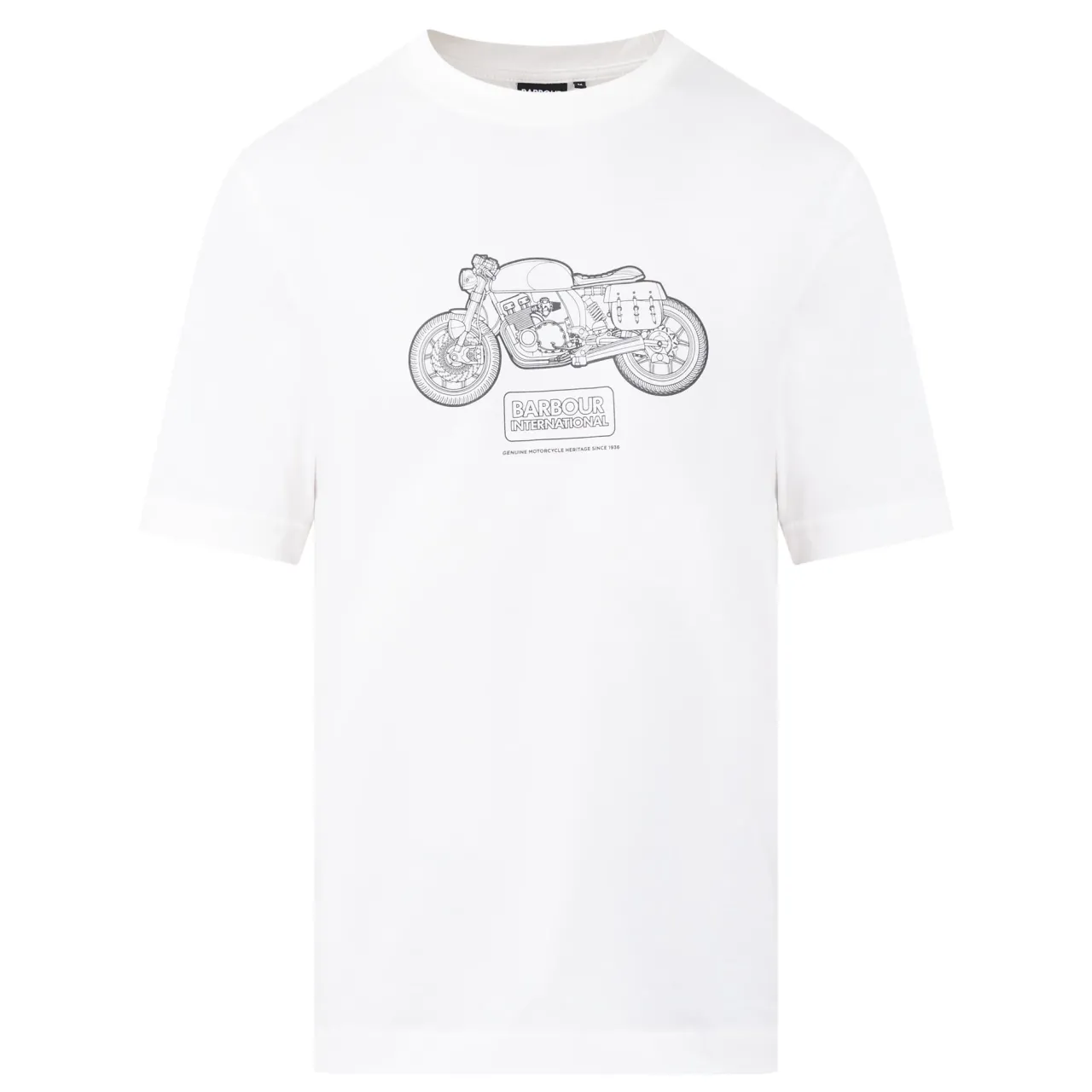 - Round neckline, short sleeves, straight hemline, motorbike graphic, logo details