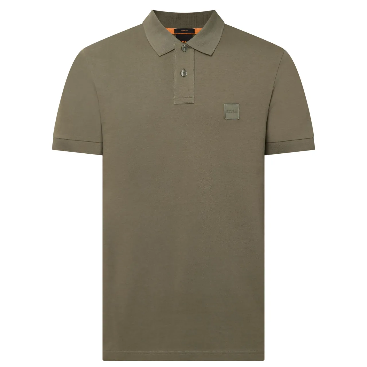 - Flat collar and cuffs, button fastening, short sleeves, straight hemline, logo badge