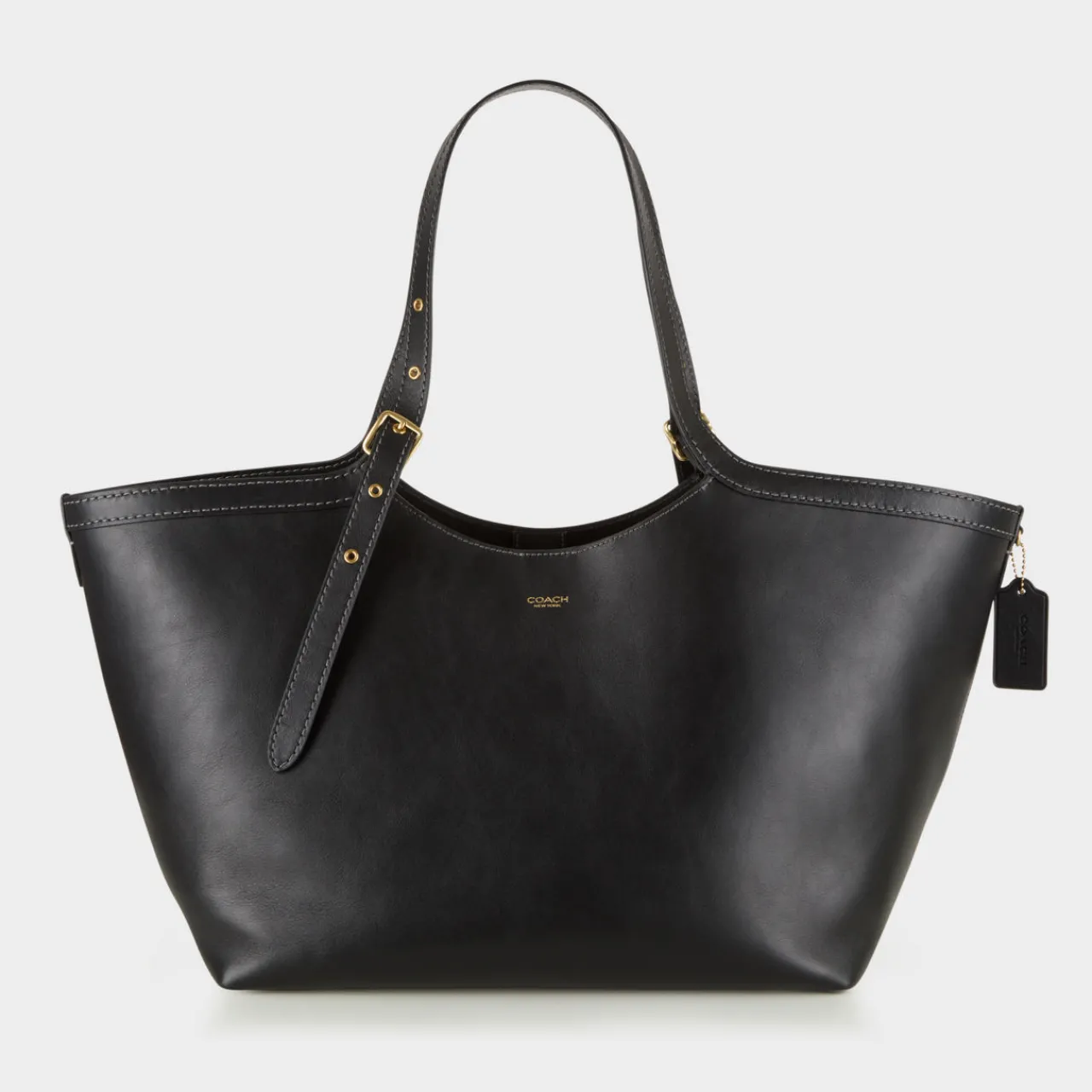 - Adjustable top handles, magnetic dot fastening, four protective foot studs, fits laptops up to 16in, natural grained leather finish, gold-tone hardware, logo detail