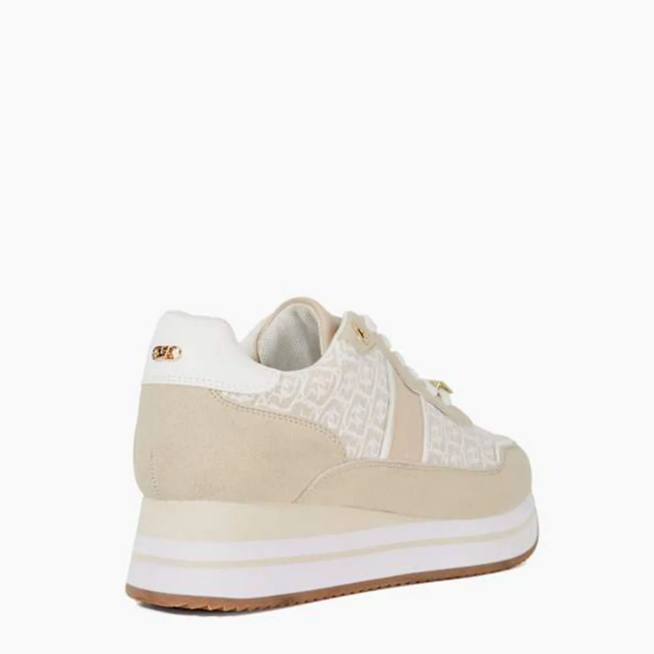 - Monogrammed material, lightweight flatform sole, breathability, responsive cushioning absorbs impact, gold-tone double D logo, gold-tone logo rivets and lace keeper, flat heel, round toe, platform sole