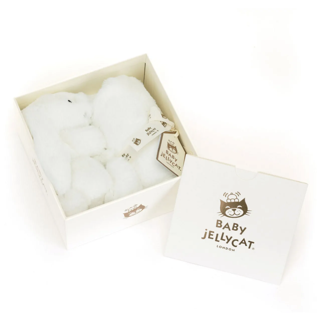 Bashful Luxe Luna Bunny Soother is irresistible to touch in Jellycat’s softest fur. A timeless newborn gift, this flop-eared bunny holds a sumptuous cloud for newborns to doze with. Crafted with stitched eyes and a gold thread nose, this soothing bunny is ready to gift in a satin sheen gift box with gold foil detail and matching gift card.