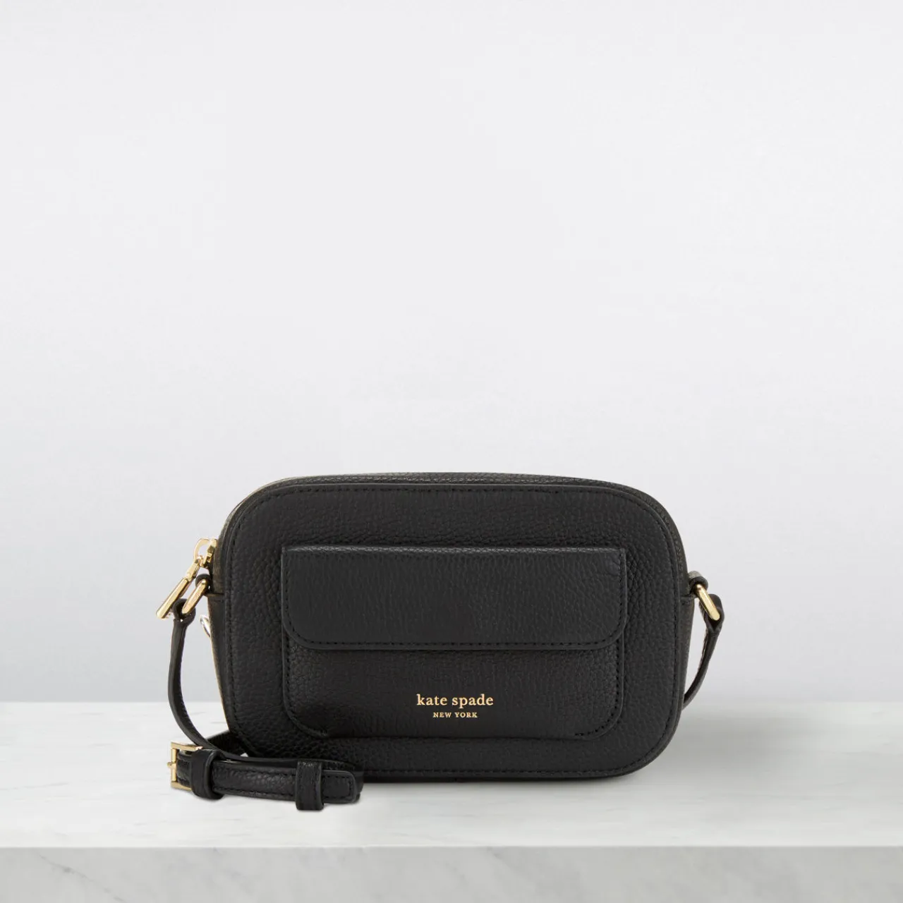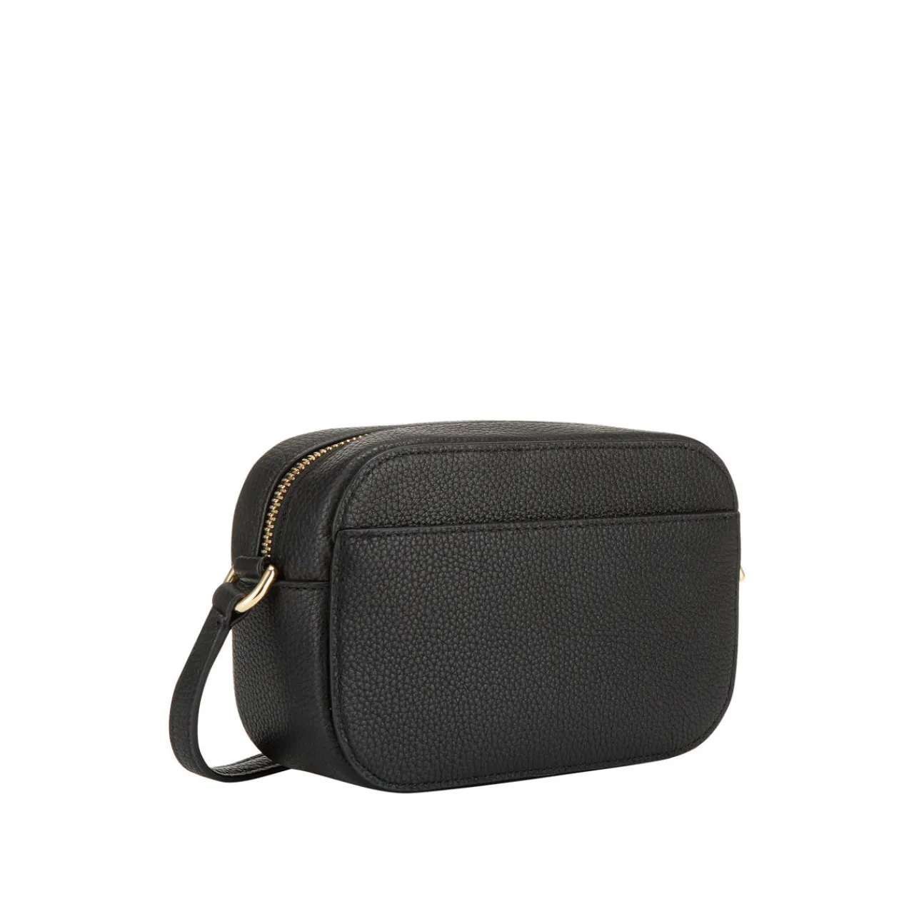 - Top zip-fastening closure, gold-tone hardware, adjustable crossbody strap, outer front pocket, logo branding, tonal stitching, back slip pocket, grained leather finish