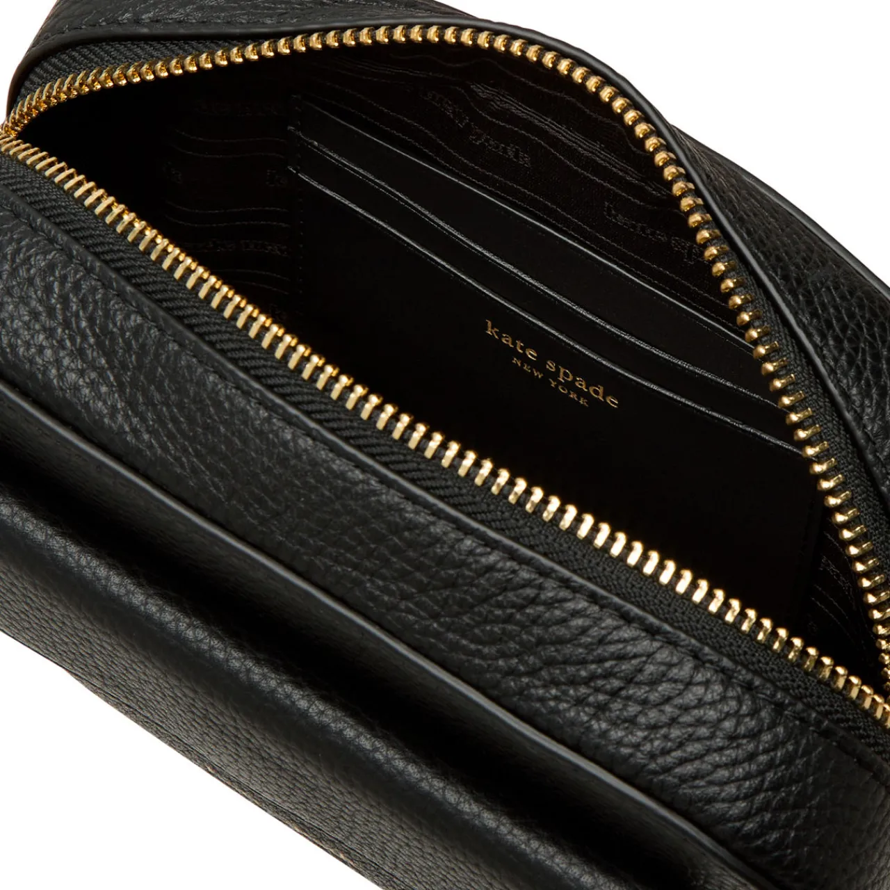 - Interior: One main compartment, inner slip pocket, three card slots, logo branding