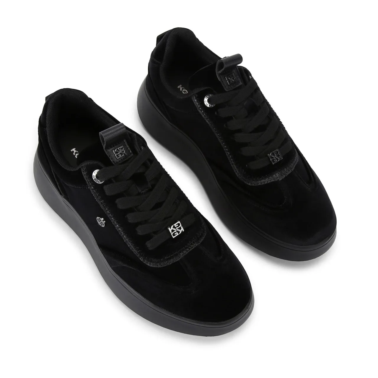 - Microsuede finish, gunmetal branding details, chunky sole