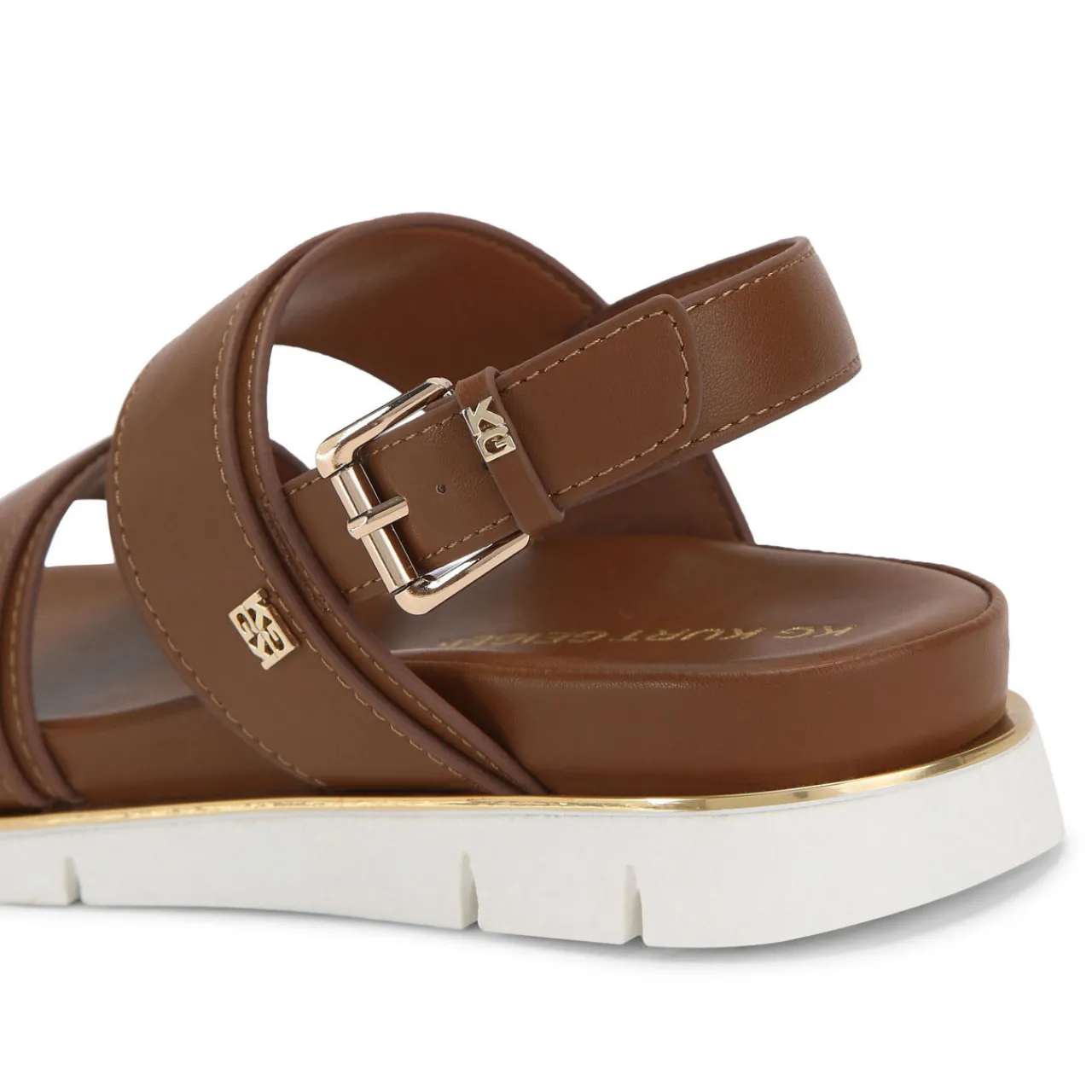 - Gold buckles fastening the ankle strap, band detail at sole