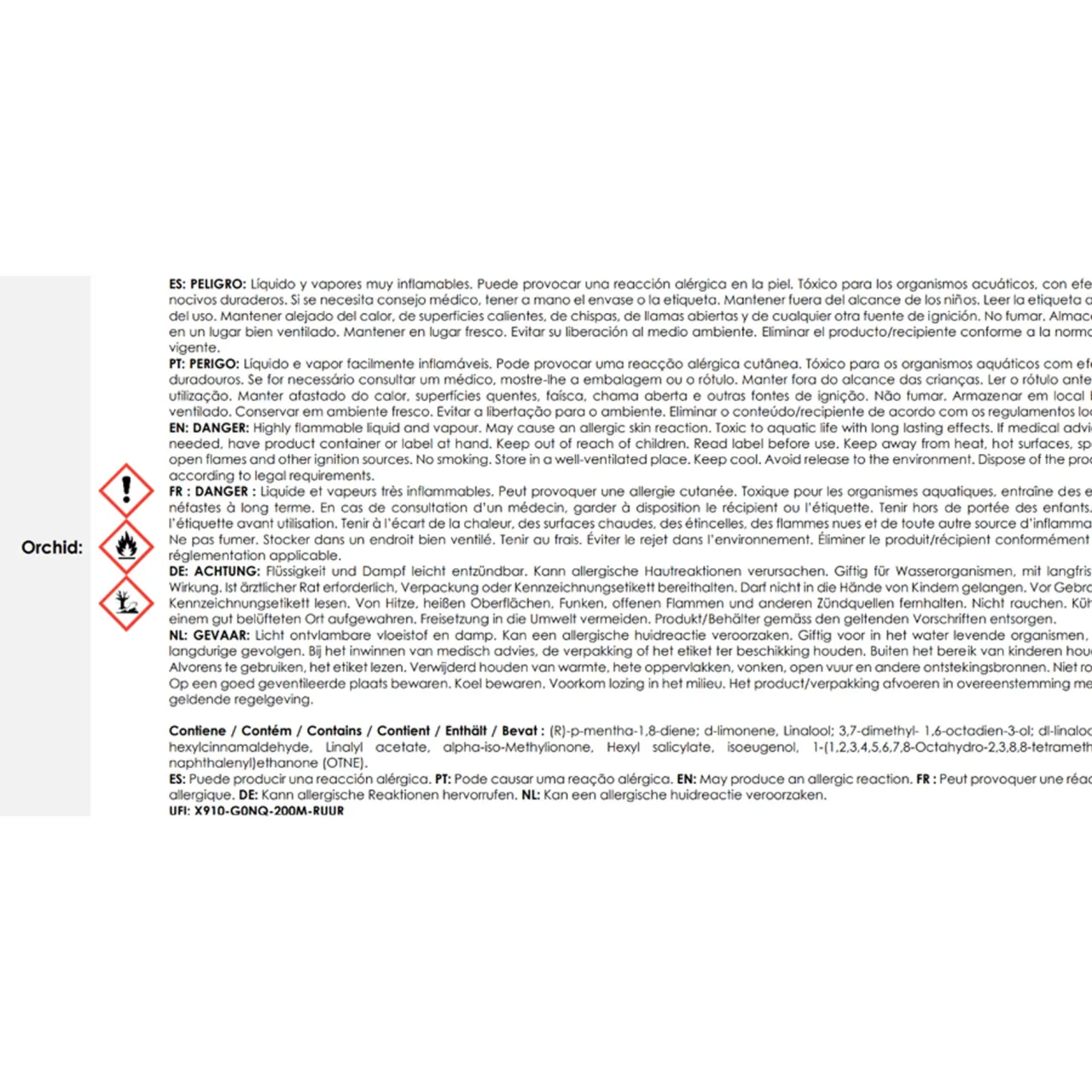 - Fragrance Notes: Top notes (Citric Notes, Green Leaves, Geranium), Middle notes (Orchid, Musk), Bottom notes (Amber, Hardwood)