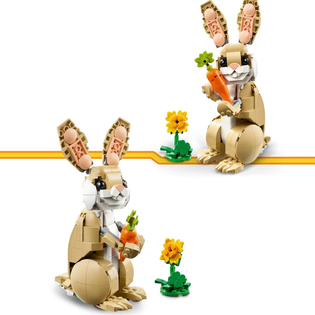 - 326 pieces, builds three posable animal figures, bunny can move its head, ears, forelegs and hind legs; the llama toy can move its ears, head, tail and feet; and the seal toy can move its head, neck and flippers