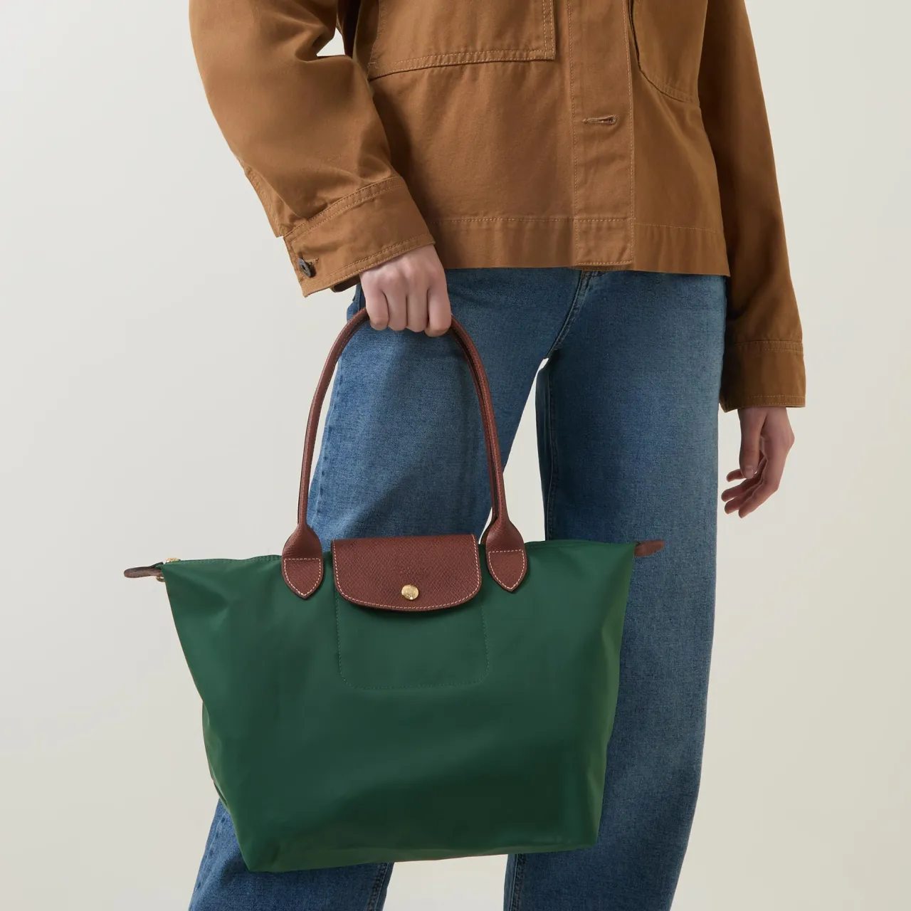 - Carry handles, flap with snap button fastening, top zip closure, leather trim detailing, gold-tone hardware, embossed logo, foldable design