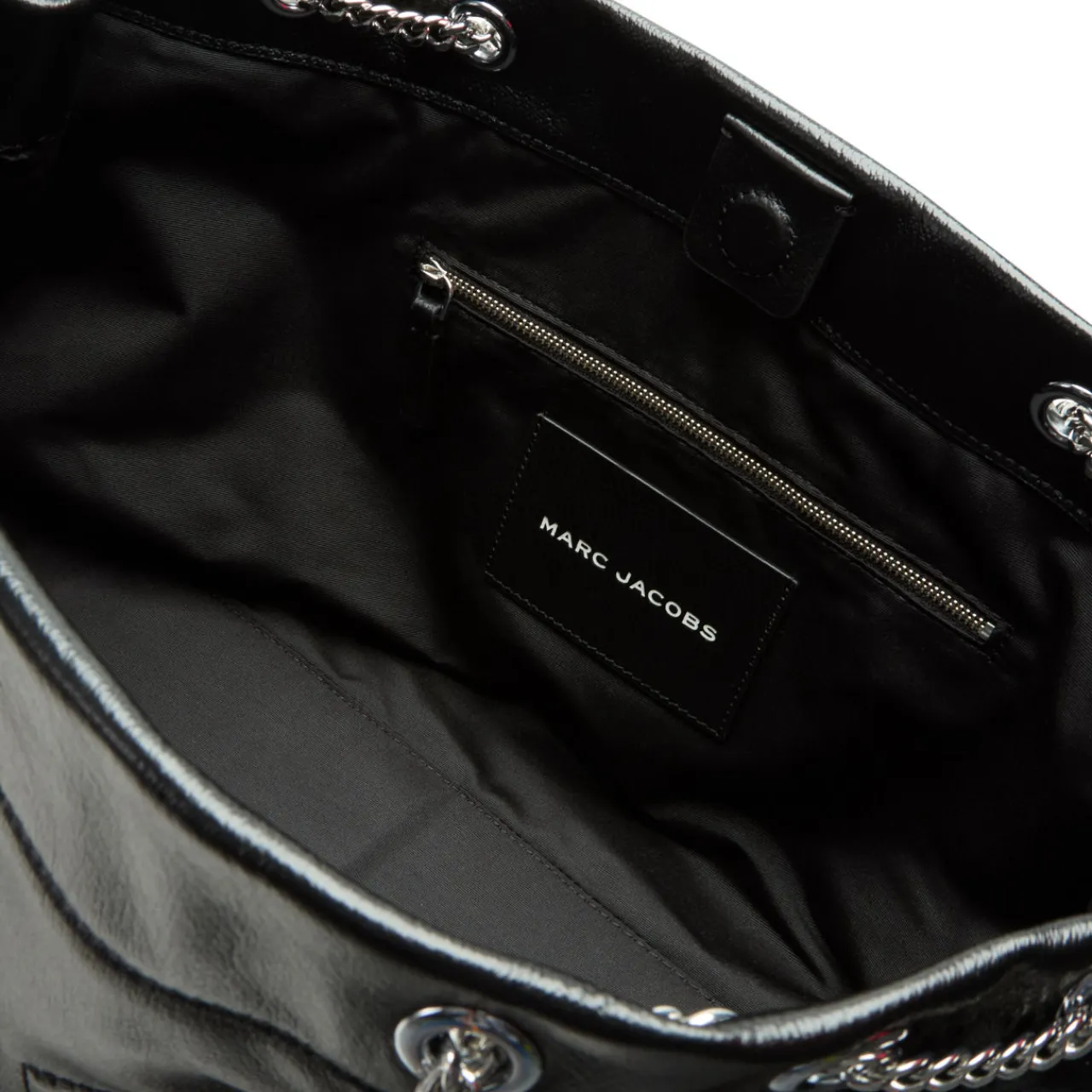 - Silver-toned hardware, top handles, logo detail, smooth finish, internal zip pocket