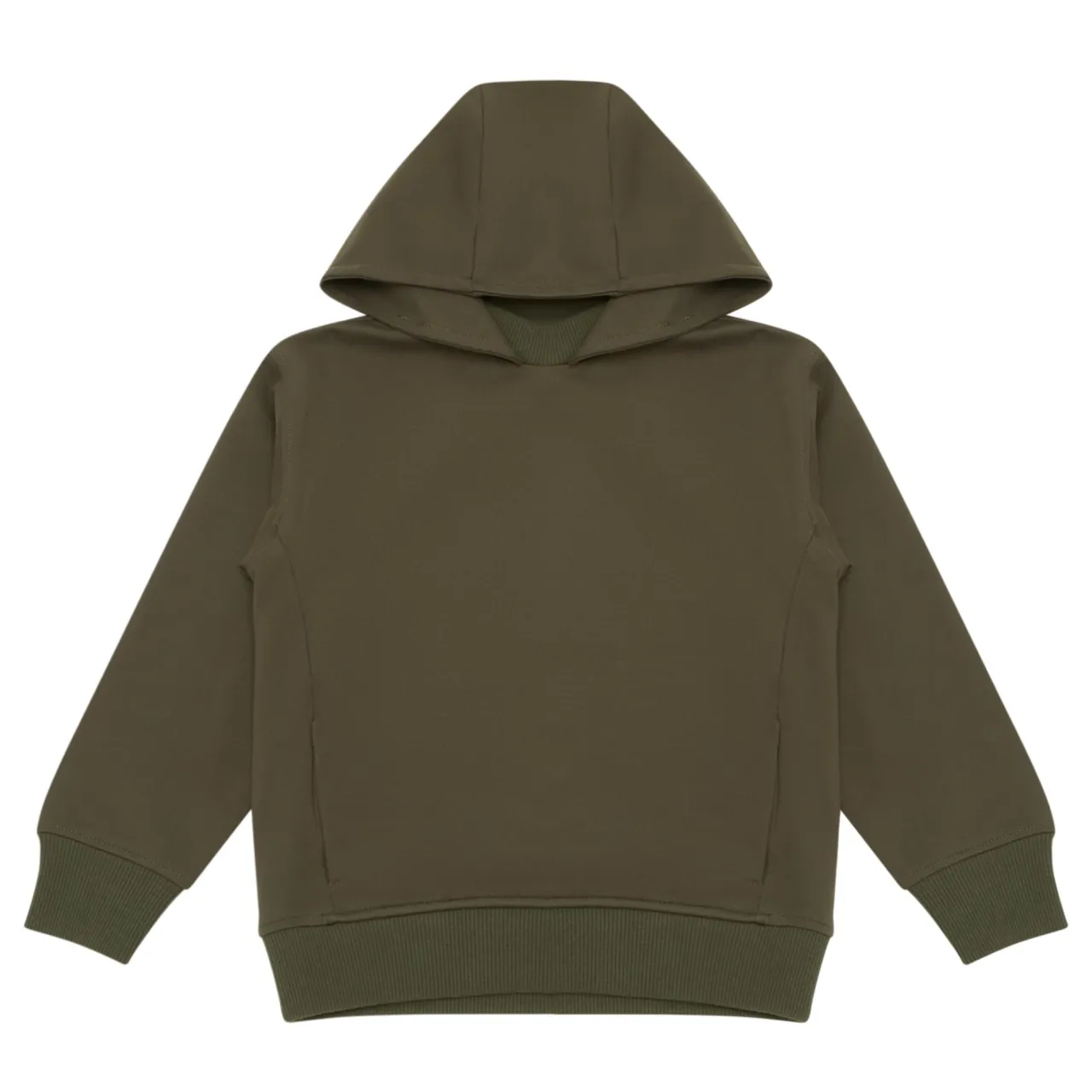 - Crew neckline, long sleeves, ribbed trims, side pockets, straight hemline, hooded