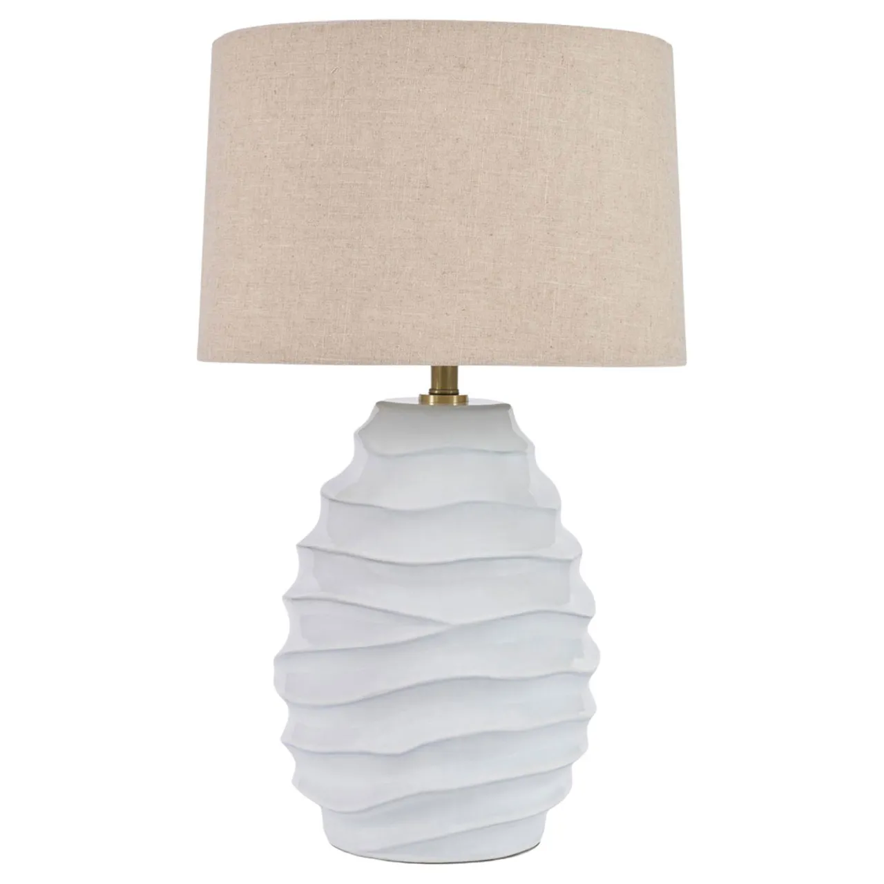 - Composition and Care: Ceramic, linen. Always turn off and allow to cool before cleaning. Use a soft, dry cloth to gently wipe down. Regularly clean light bulbs to maintain brightness and efficiency. Inspect cords and wiring for any signs of wear or damage, replacing as necessary. When replacing bulbs, always use the correct wattage to prevent overheating or damage