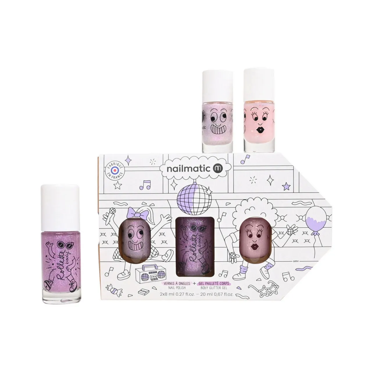 - Contents of the Set: Polly the Unicorn: Pink Glitter Child Nail Polish, Elliot the Dragon: Pink Glitter Nail Polish and Cherry Scented Glitter Body Gel