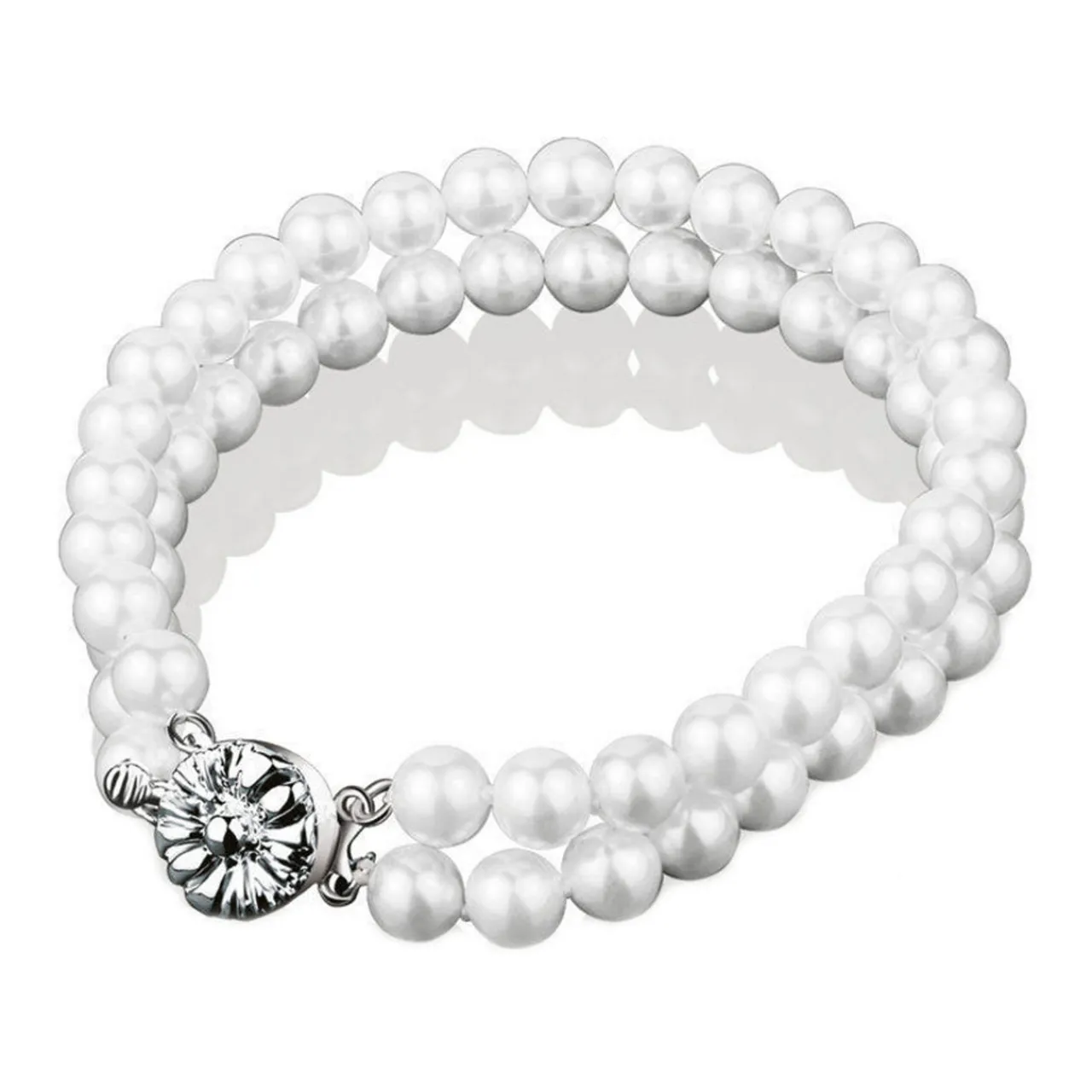 - Double-strand, floral charm, Mother of Pearl beads, silver-tone finish, vintage-inspired, presented in a branded gift box