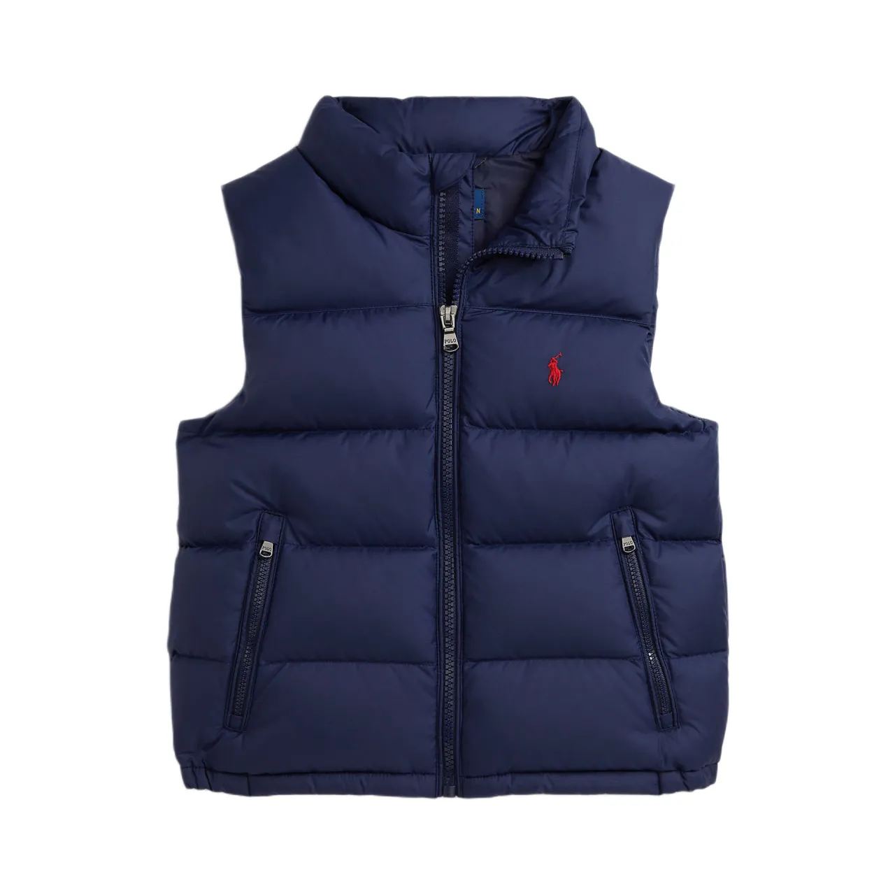 - Signature embroidered Pony logo detail, mockneck, full-zip front with flap, two front zipped pockets, elasticated side hem, signature internal name tag label, fully lined, fully filled, water-repellent shell, 650-fill-power down fill, sleeveless