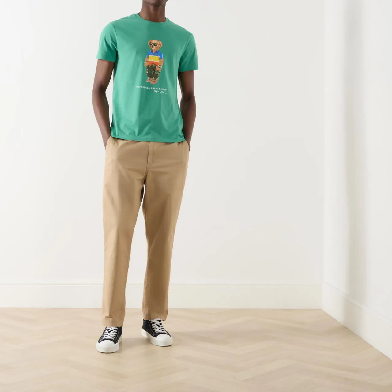 - Surf bear graphic, round neck, short sleeves, straight hemline, logo detail
