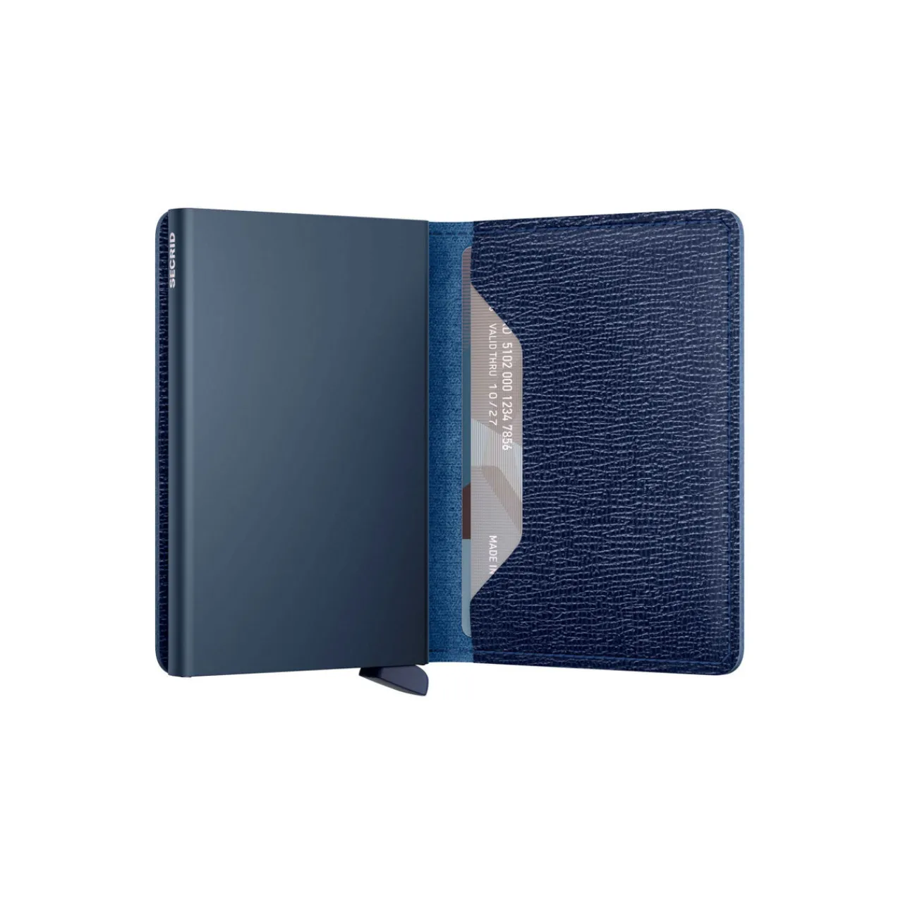 - Slim profile, extra-wide open exterior, Cardprotector mechanism, brand logo details, water-repellent crisple leather finish