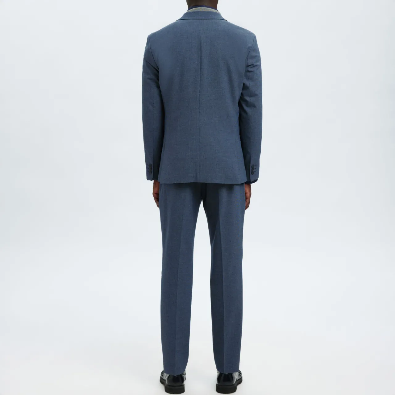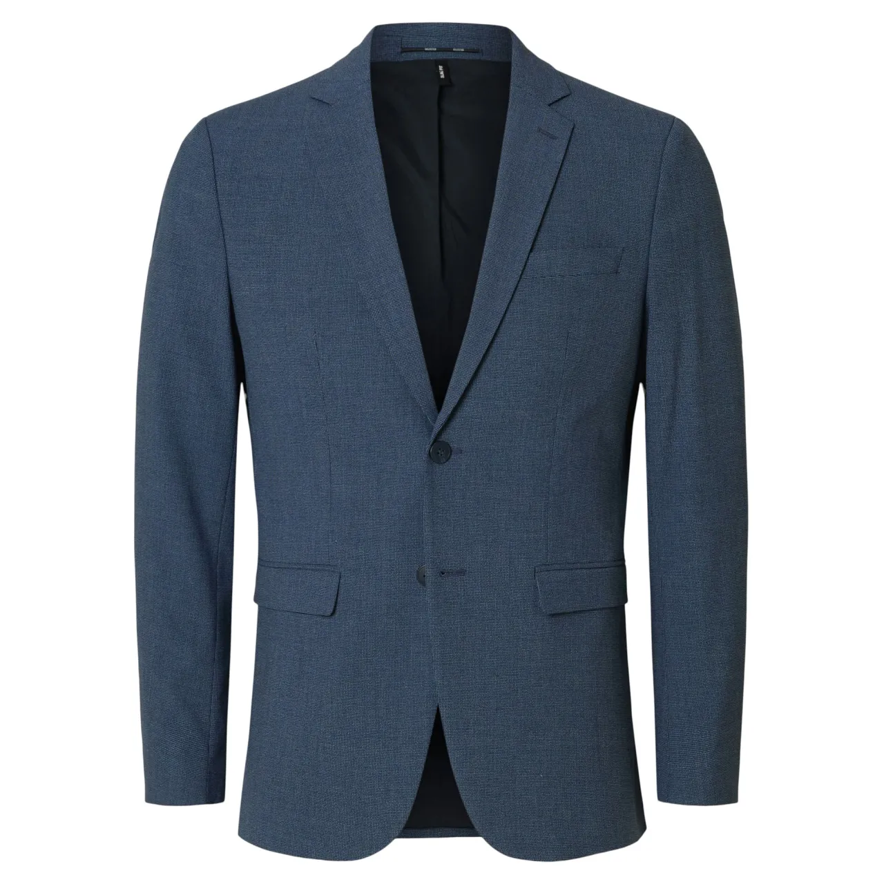 - Textile finish, buttoned cuffs, notch lapels, button fastening, fully lined, double slit at back