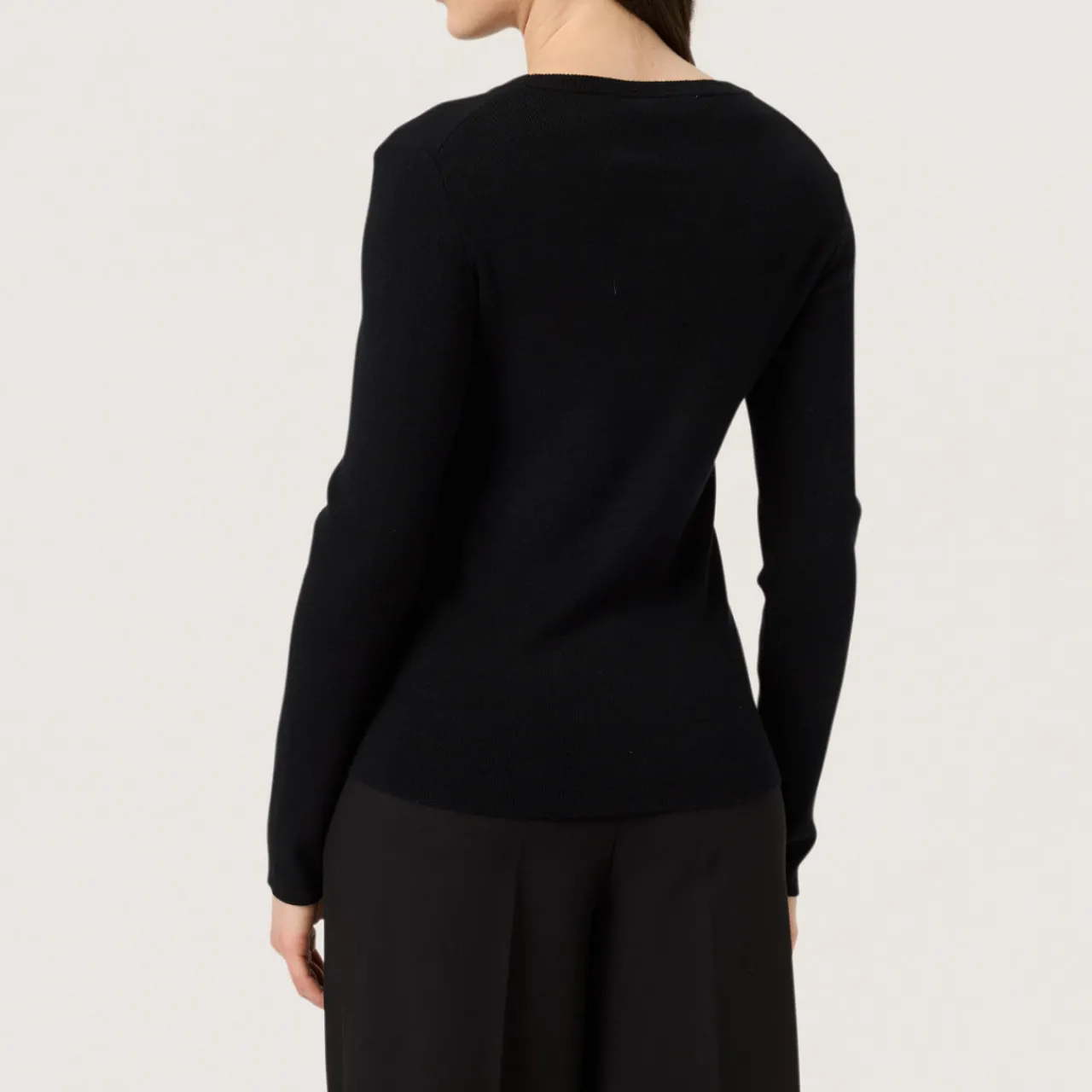 - Crew neck, long sleeves, straight hem, rib-knit trims, soft finish