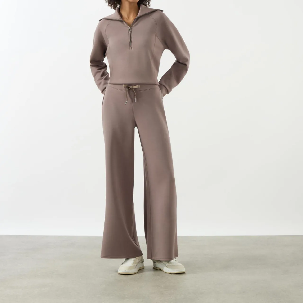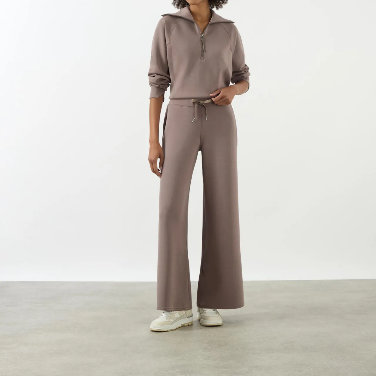 - Wide leg elasticated waistband, drawstring fastening, lightweight, fine knit