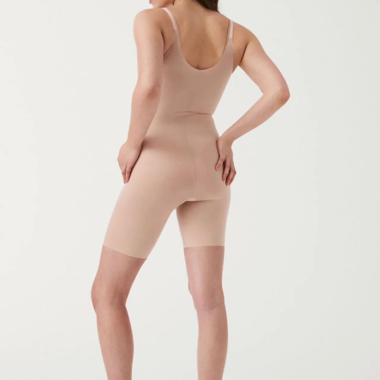 - Breathable, lightweight and silky-sleek fabric for total comfort, guarantees no visible panty lines, invisible free cut leg openings, helps to smooth the appearance of lumps and bumps while lifting and firming, open-bust so you can wear your own bra, adjustable straps with front sliders, opens at the base, Printed Power™, made with Lycra® FitSense™, offers lightweight targeted tummy shaping and wraps around for added side support