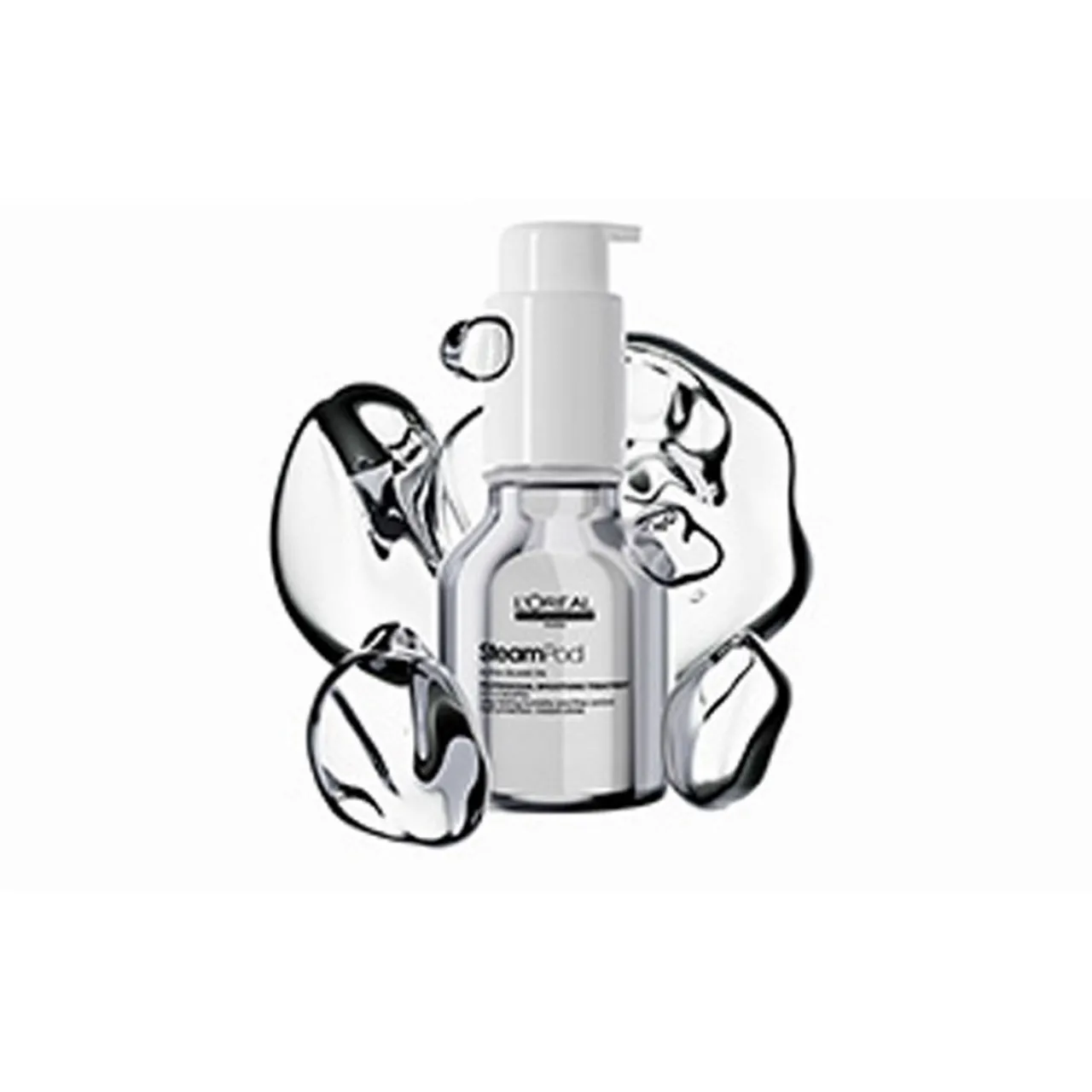 SteamPod Professional Smoothing Treatment is a thermo-protective that protects hair from heat and extreme humidity conditions. This L’Oréal Professionnel concentrate is formulated without water and enriched with Alpha-silane. Activated by heat and steam, it creates a protective layer around the hair fibre lasting up to 5 shampoos**.