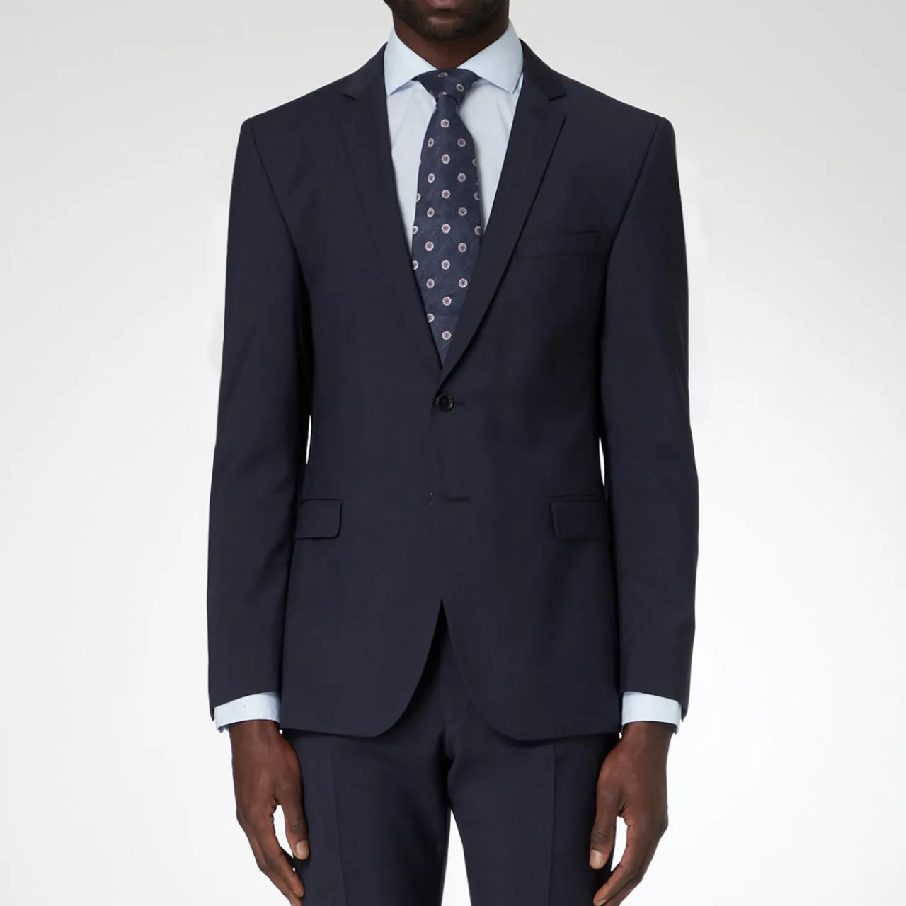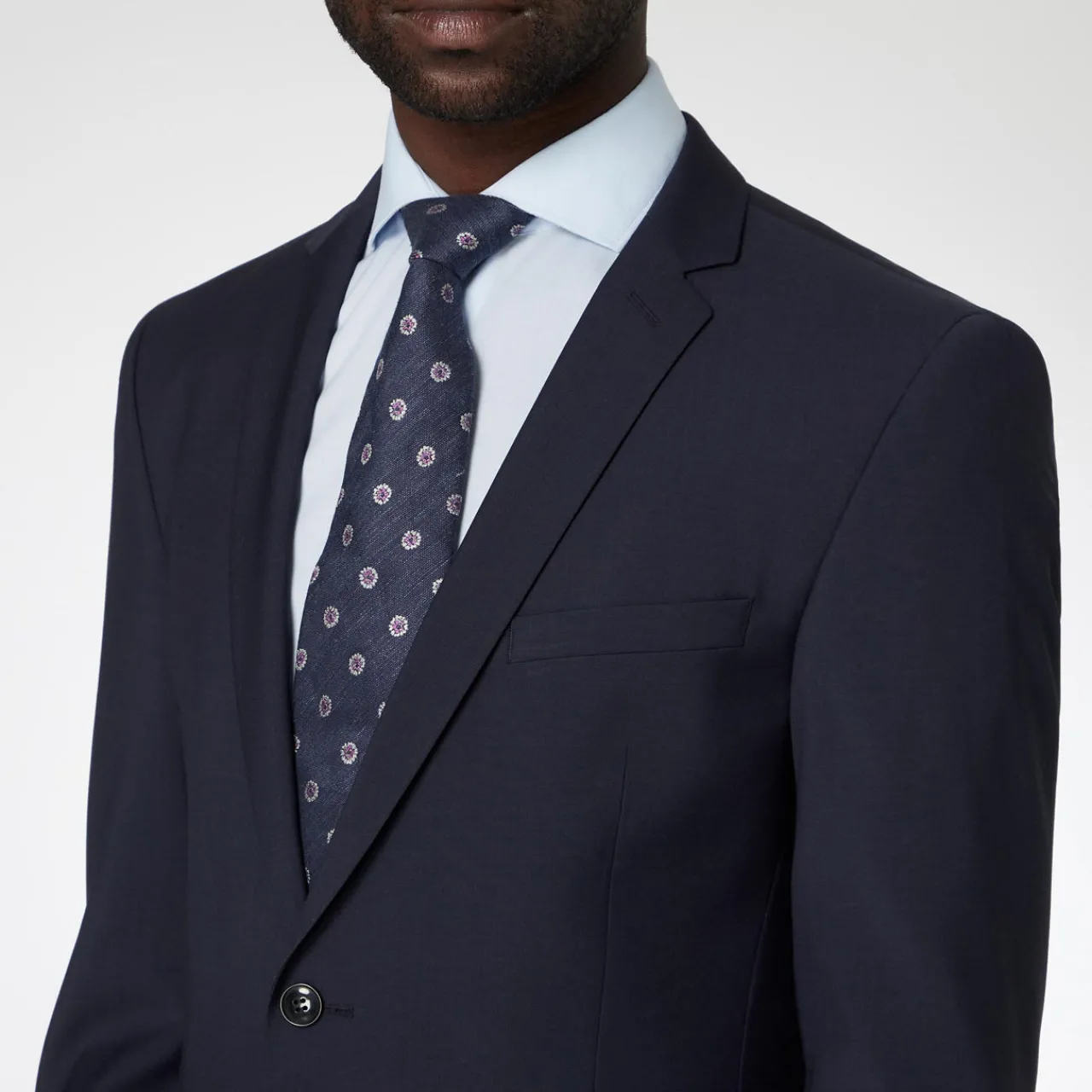 - Single-breasted, padded shoulders, notched lapels, welt pockets, fully lined.