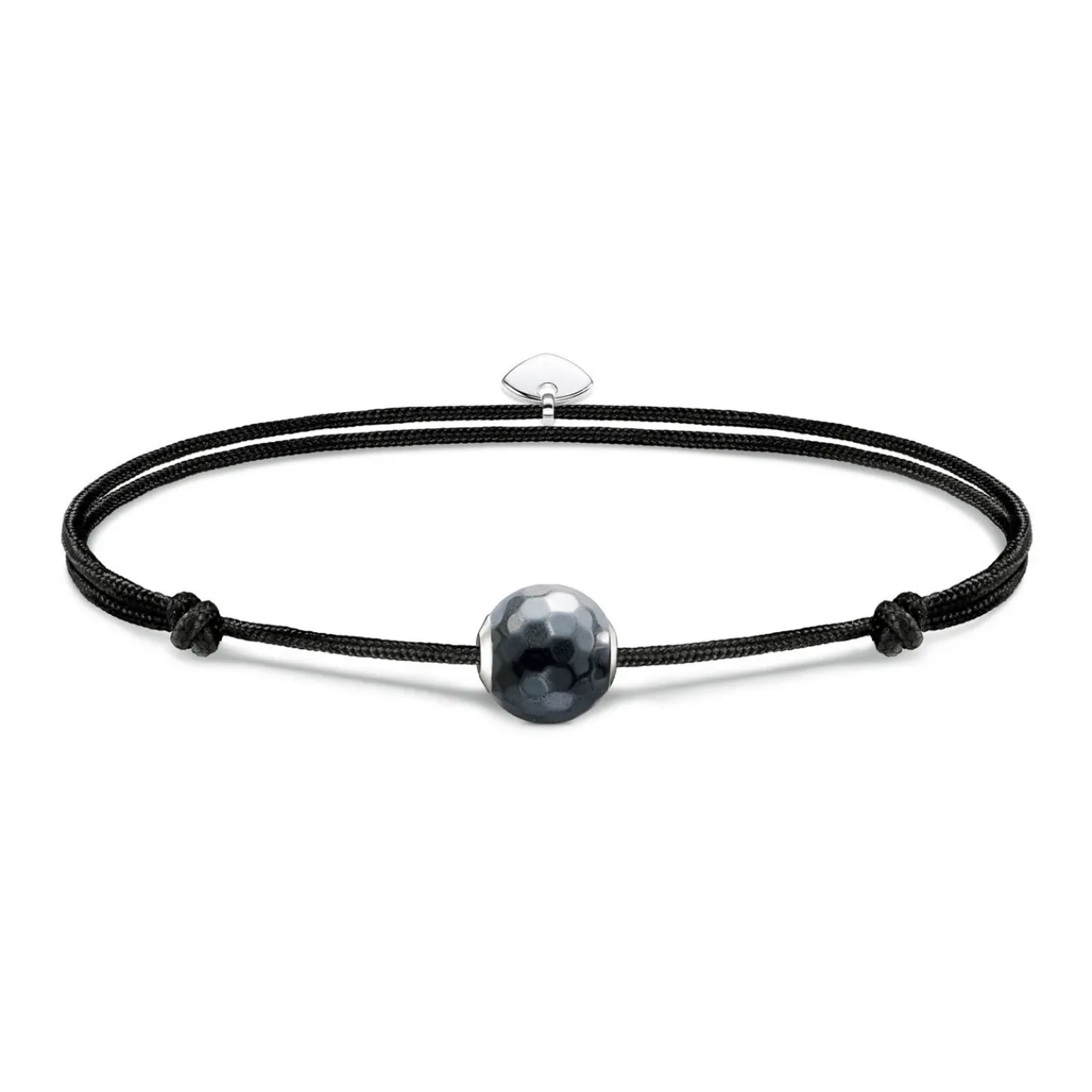 - Textile bracelet, hand-crafted black Haematite Karma Bead, detailed hexagonal facet-cut, secured with two knots, adjustable length, sliding clasp fastening